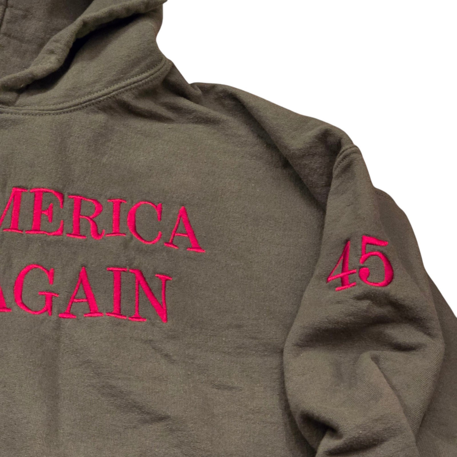 Trump MAGA Hoodie XL Olive Green Pullover Sweatshirt Make America Great Again