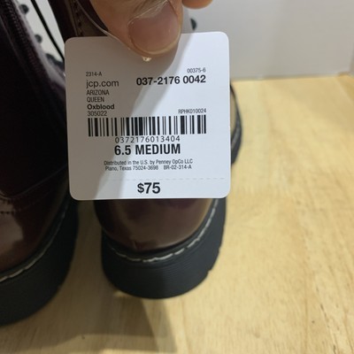 The Arizona Jean Co Women's Az Queen Oxblof Flat Heel Combat Boots in size 6.5M are stylish and comfortable ankle boots perfect for casual occasions. These red boots feature an almond toe shape, zip closure, and a low flat heel for added comfort. With cushioned, memory foam insoles and a rubber outsole, these boots provide all-day comfort and support. The synthetic upper material and fabric lining make them durable and easy to care for, while the combat style adds a trendy touch to any outfit. Perfect for going out or simply running errands, these Arizona Jeans boots are a versatile and fashionable choice for any woman's wardrobe.