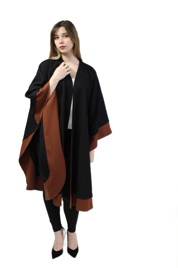 Vintage Casa Sesena Long Wool Cape Black Sienna Colorblock Womens One Size