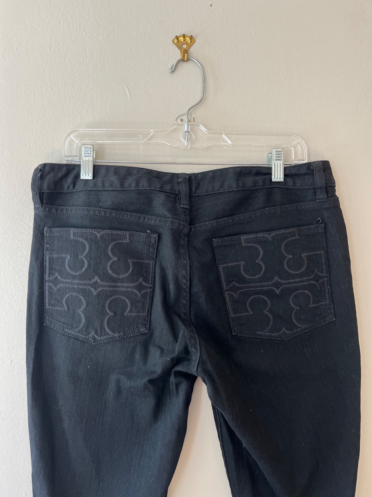 Tory Burch Sz 31 Black Super Skinny Slim Jeans Pants Pockets Logo