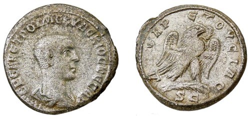 Reverse: ?????? ????C??C, eagle standing right on palm frond, with wings spread, holding wreath in beak; SC in exergue.