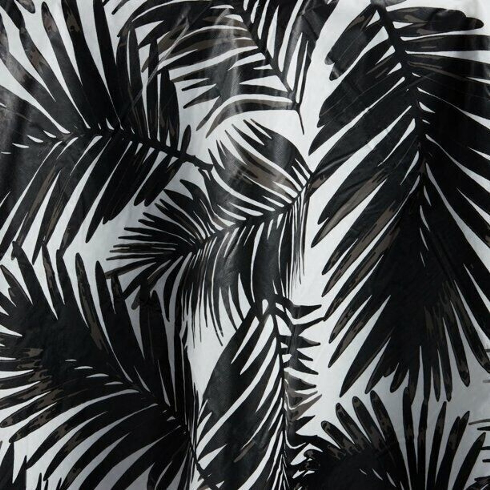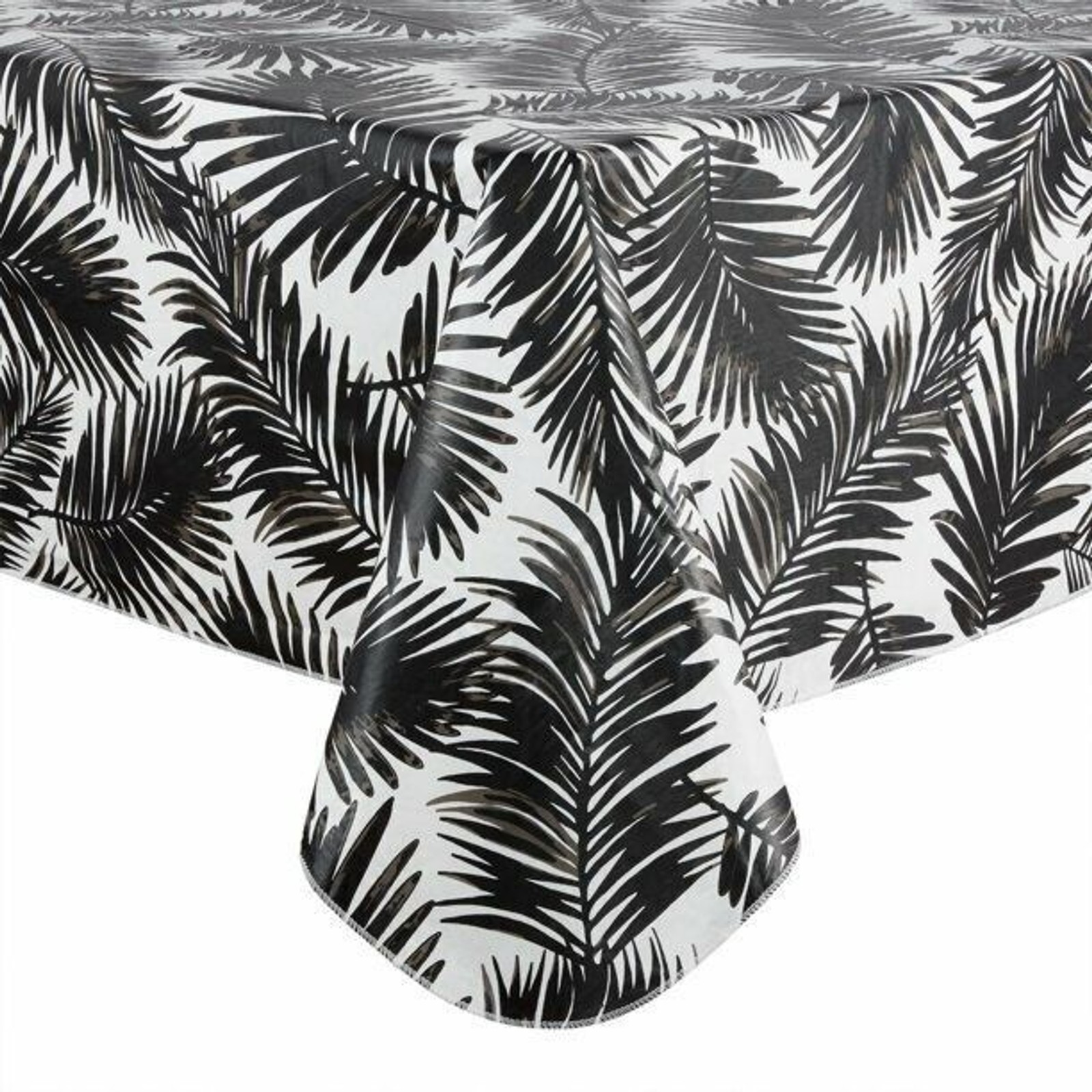Black Palm Leaves on White PEVA Tablecloth.