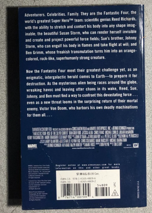 FANTASTIC 4 RISE OF THE SILVER SURFER (2007) Pocket Star paperback novel 1st