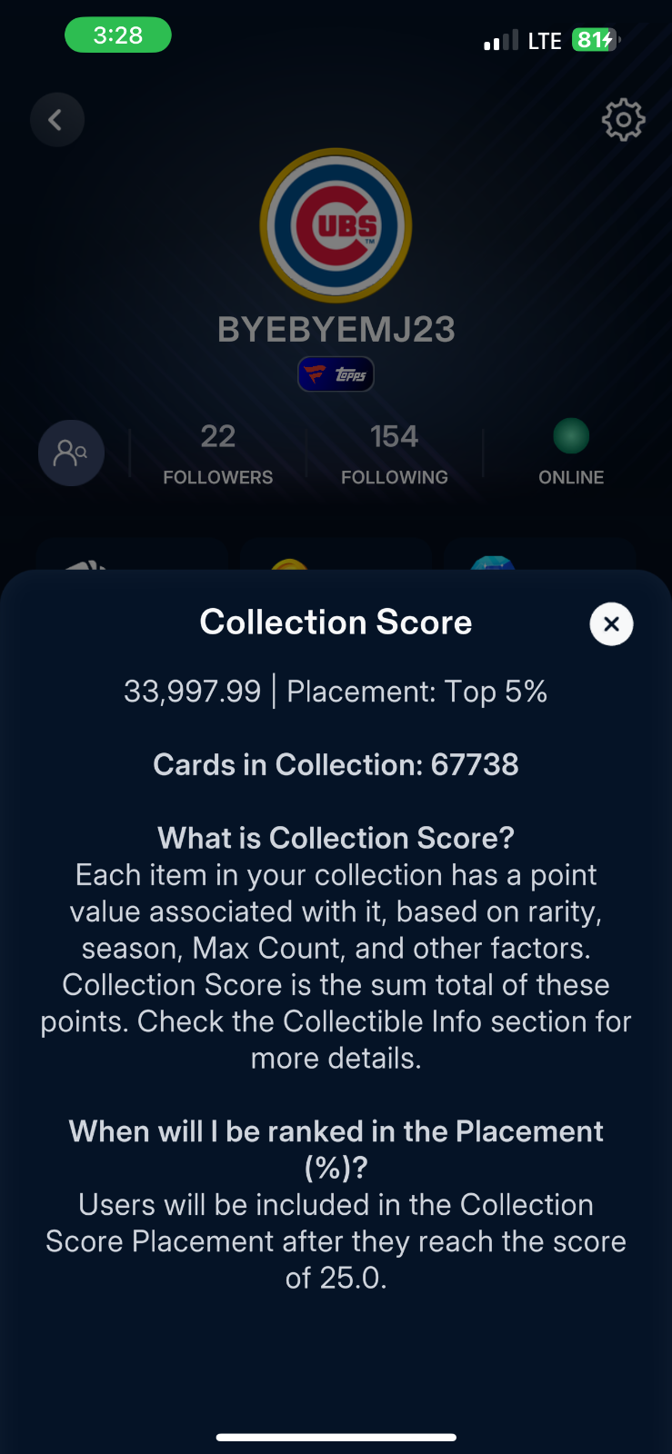 TOPPS BUNT DIGITAL Entire Account Top 5% User Name "byebyemj23"