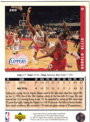 1994-1995 Silver Signature Upper Deck Collector's Choice Card Harold Ellis #289