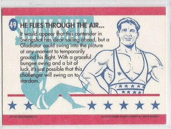 M) 1991 Topps American Gladiators Trading Card #49 He Flies Through the Air...