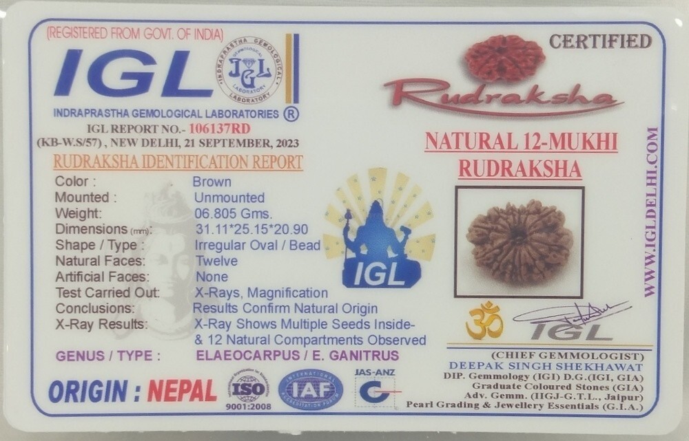 Super collector 12 Mukhi rudraksha -31.11 mm - Nepal - Lab Certified