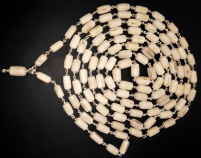 Adecuado para usar en dos pliegues (en dos pliegues de longitud, 21 pulgadas alrededor del cuello) Diseño : Hecho de cuentas tulsi blancas puras seleccionadas en alambre de plata fuerte que tiene un estilo de nudo tradicional. Tulsi significa "el incomparable". Tulsi es divinidad. Tiene apariencia, aroma y sabor muy distinguidos. Tulsi es recompensado como la 4 encarnacion de la diosa suprema y se usa para cantar mantras del Señor Vishnu, Ram y Krishna. Tulsi es considerado como la cuarta encarnacion de la diosa suprema. Según Ayurveda, es muy útil para curar las enfermedades de la garganta. Tambien se usa para la pur