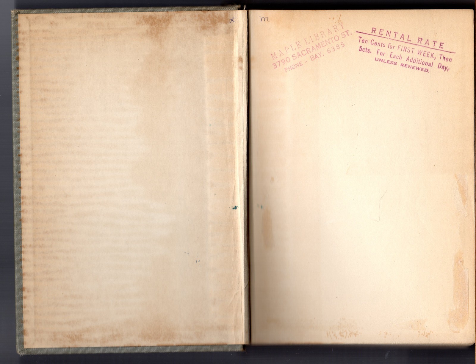 Purple rental rates rubber-stamped to the upper front end-paper, end-papers age-toning as usual, slight rub-wear to the upper and lower spine edges and corner tips, else about very good in gray linen with plum embossed titles to the front cover and to the spine; in a good only dust jacket with rubs and very short tears to the shelf-edges, nicks, rubs and tears to the front flap-fold, large piece missing from the upper and lower spine panel, tears, separations and chips to the spine folds; original printed $2.00 price still intact to the front inner flap, author photo to the rear flap.