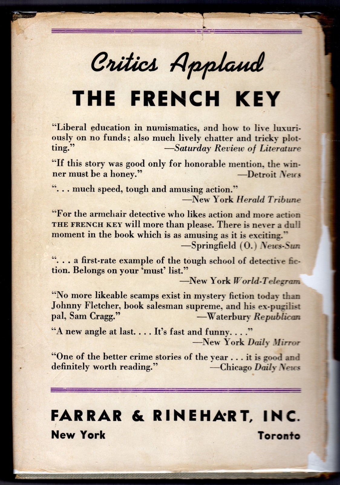 The second novel by the western, very hard-boiled, pulp, and mystery author of the Tommy Ralls series, TV scriptwriter, and screenwriter of numerous successful films including 'The French Key' and 'The Mask of Dimitrios'.