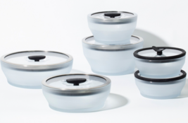 Lids have silicone and microwavable stainless-steel rims to ensure secure fit, retain moisture and prevent splatters (small dish lids do not feature stainless steel).