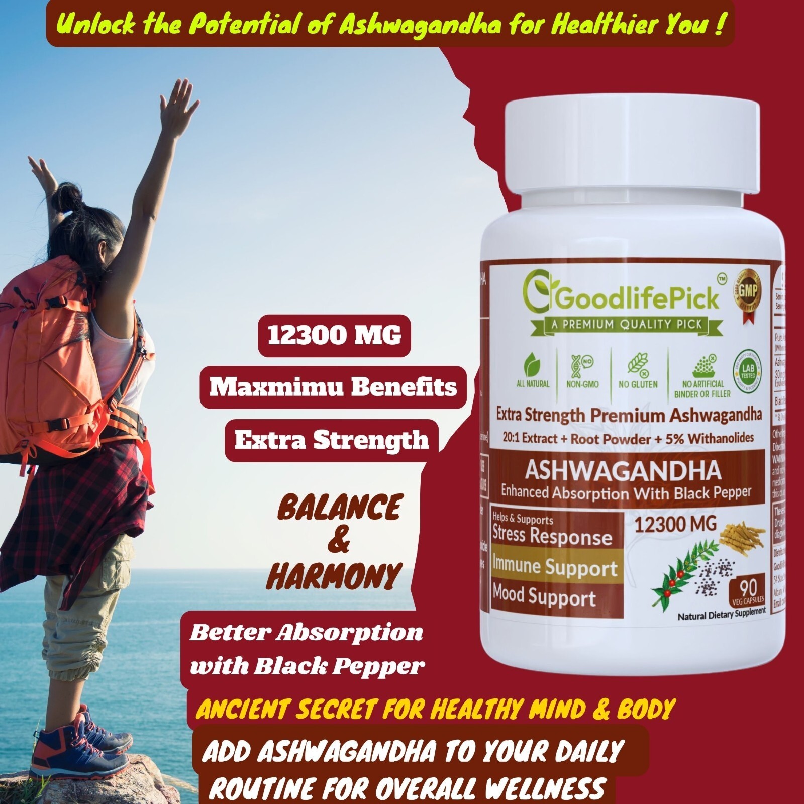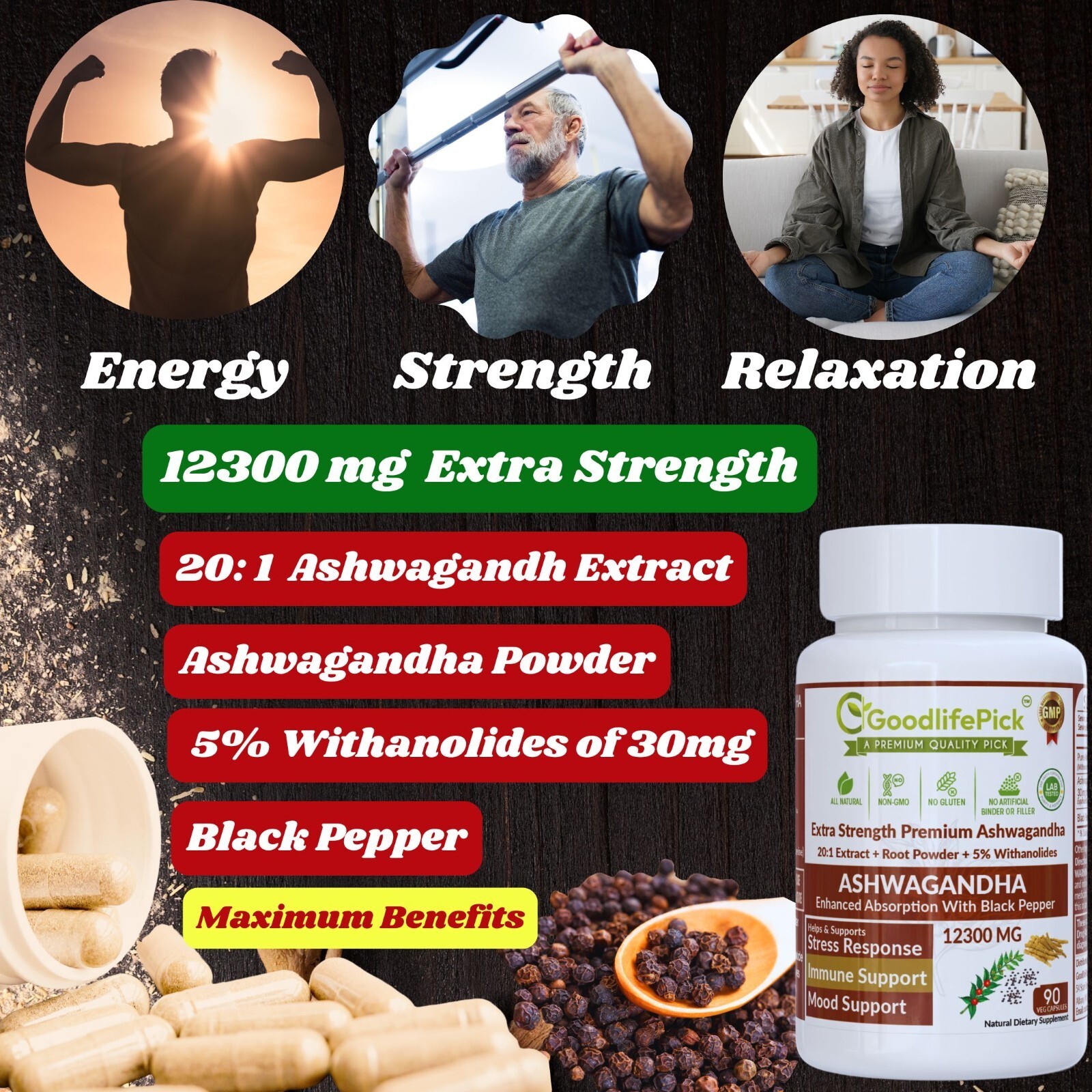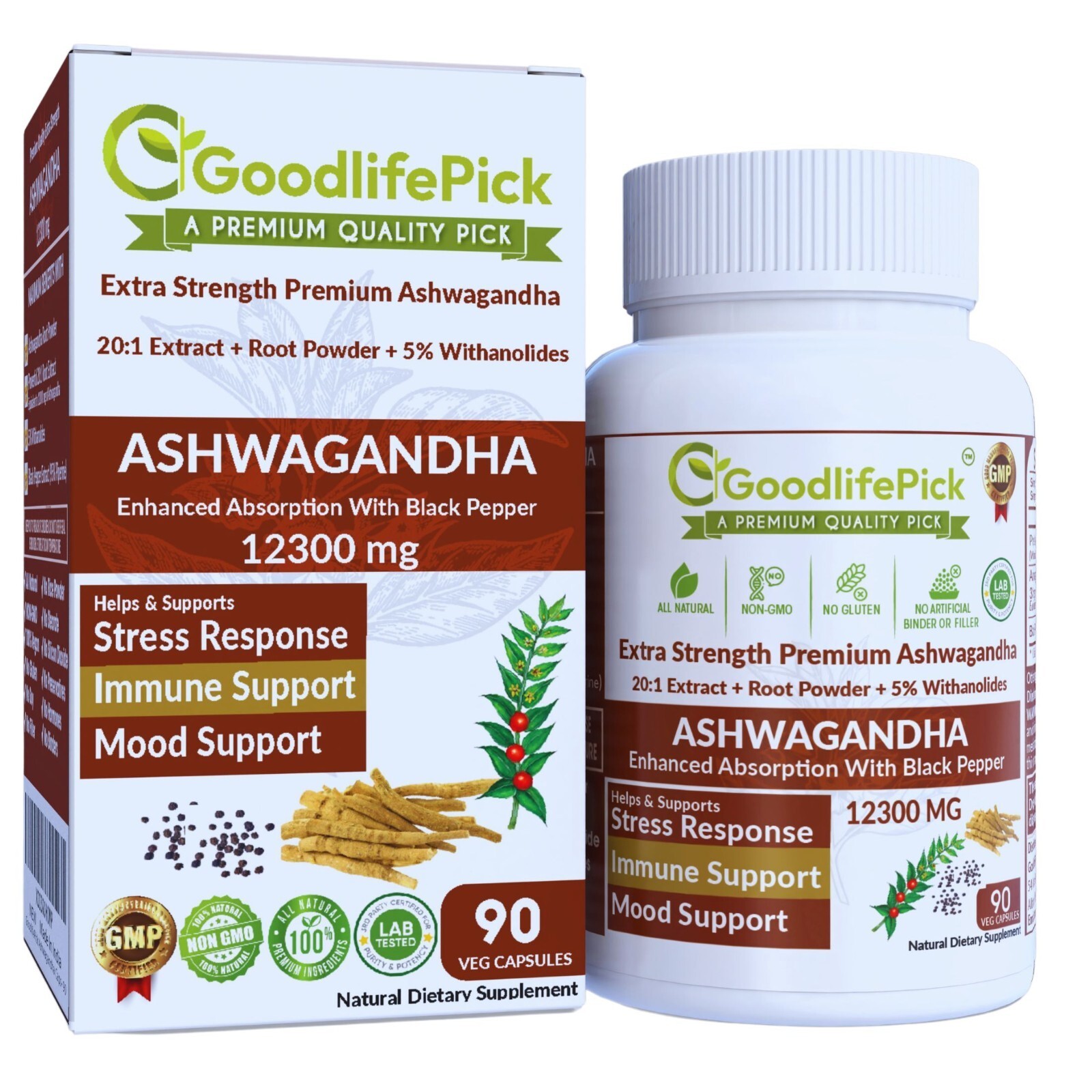 GoodLifePick Ashwagandha Capsules Ashwagandha Supplements are Made with Premium