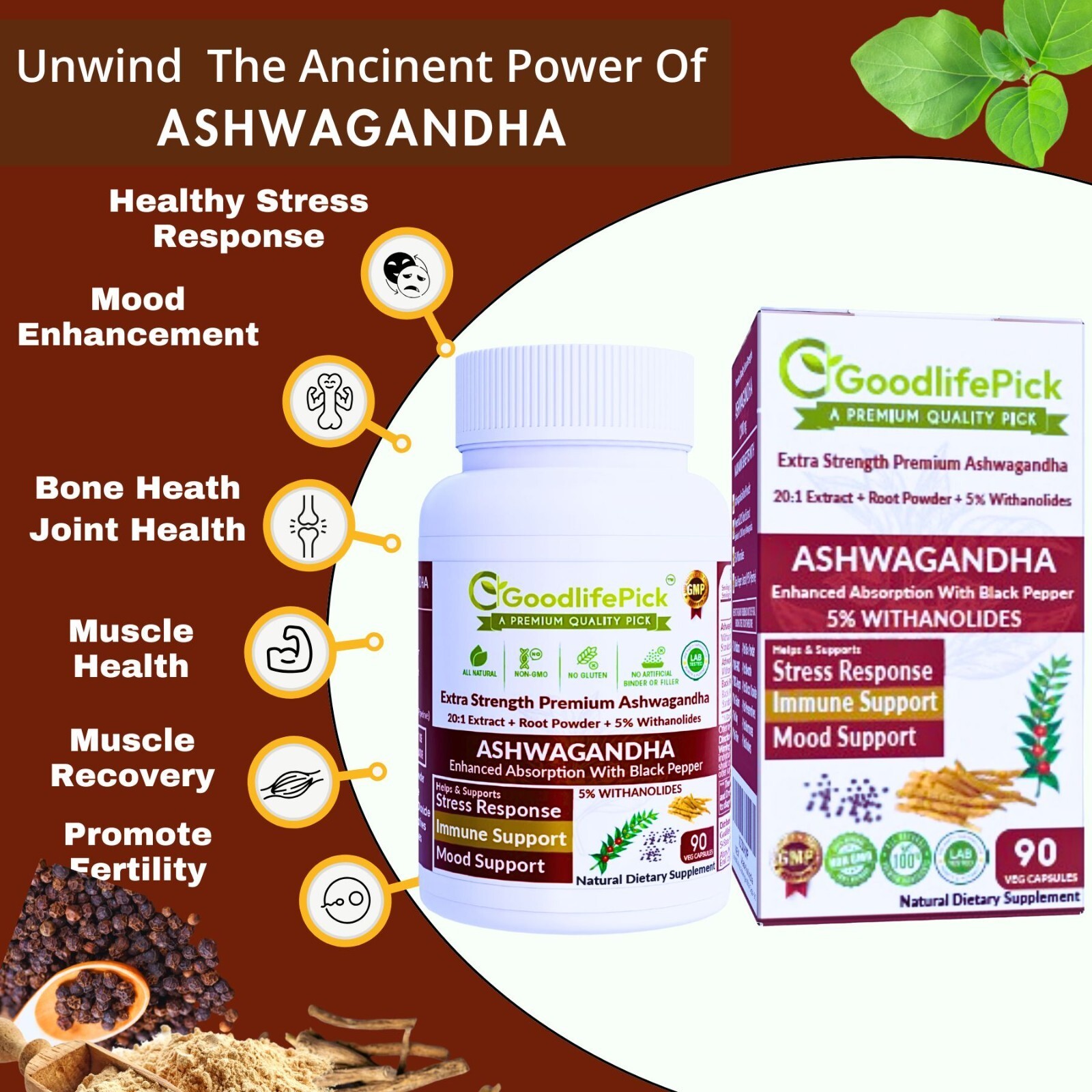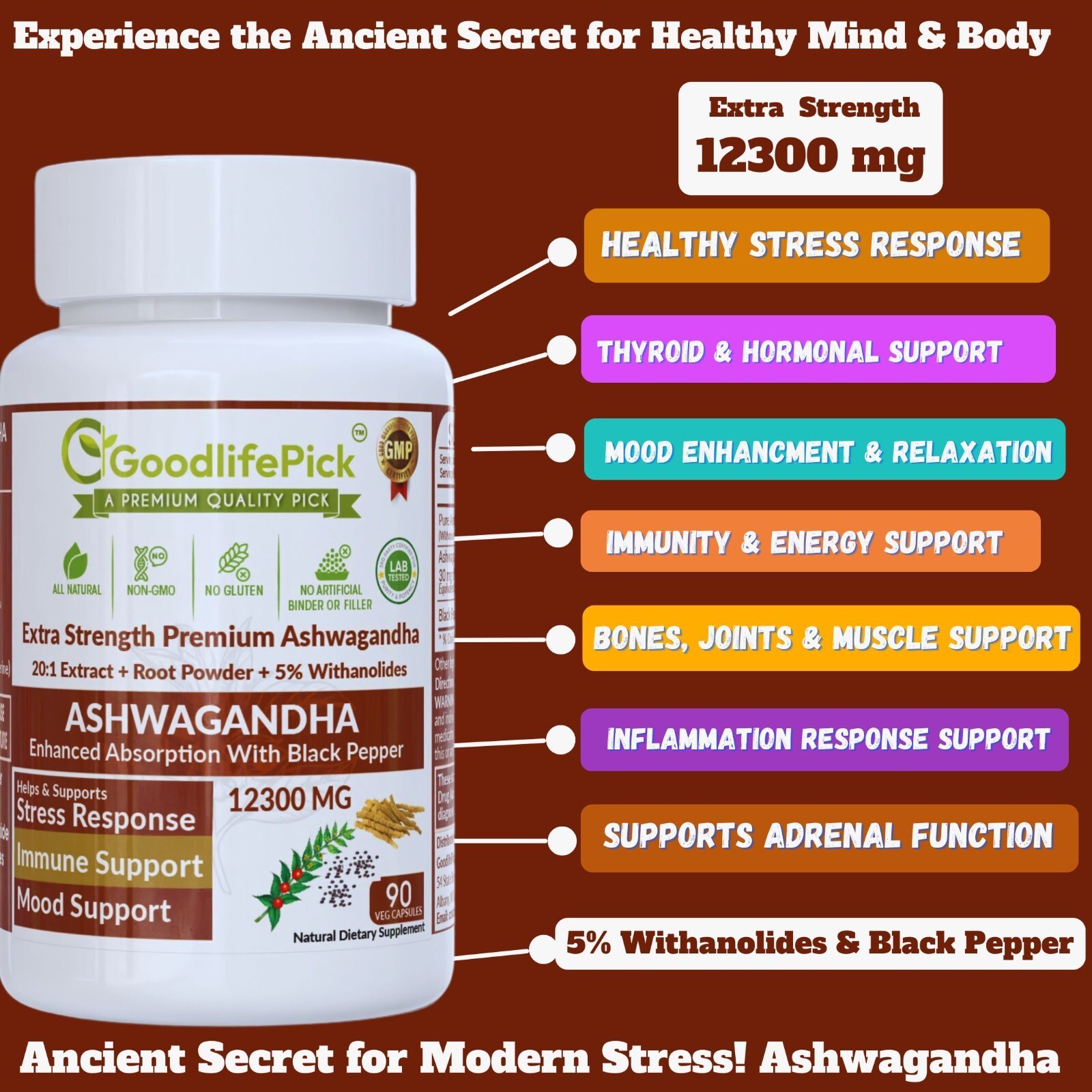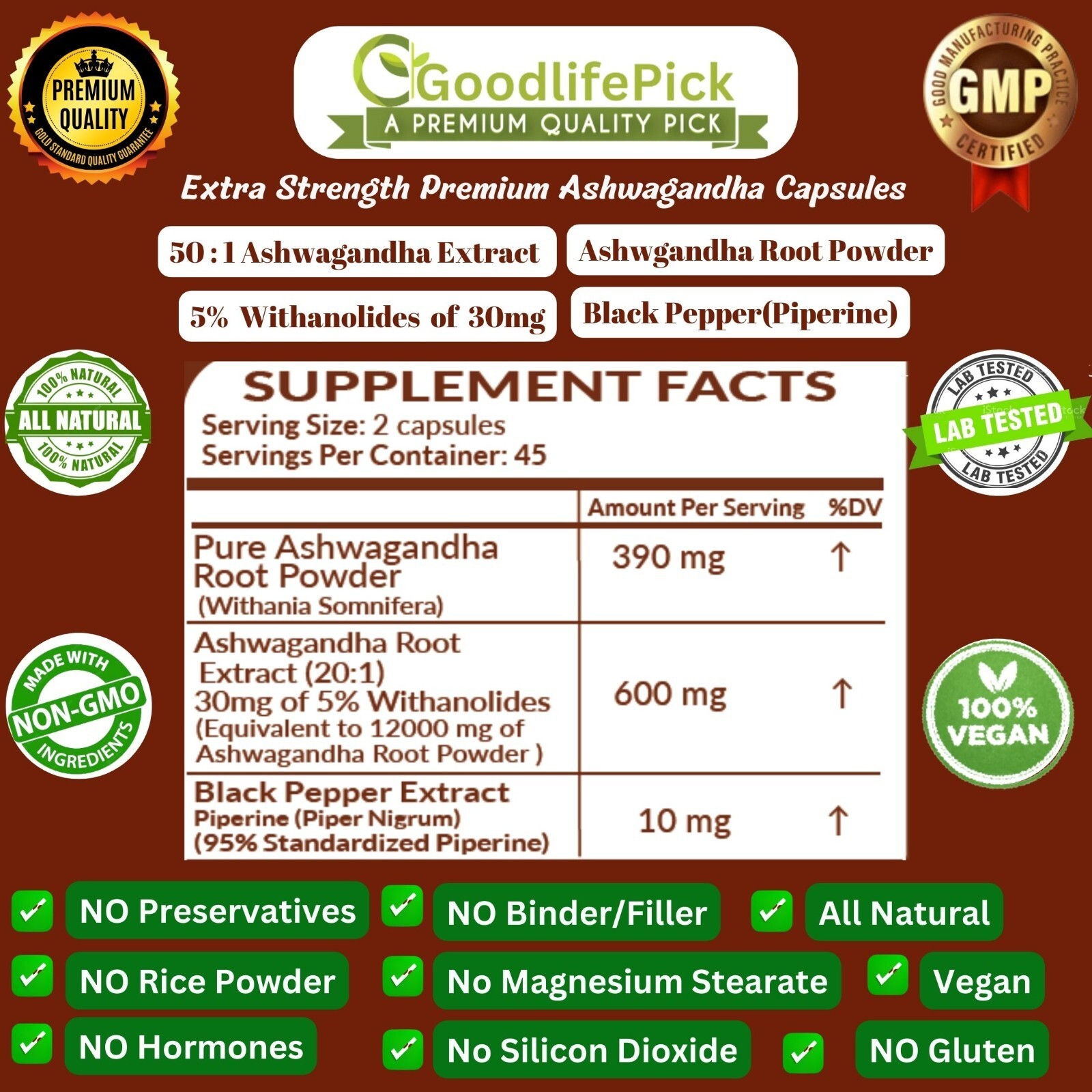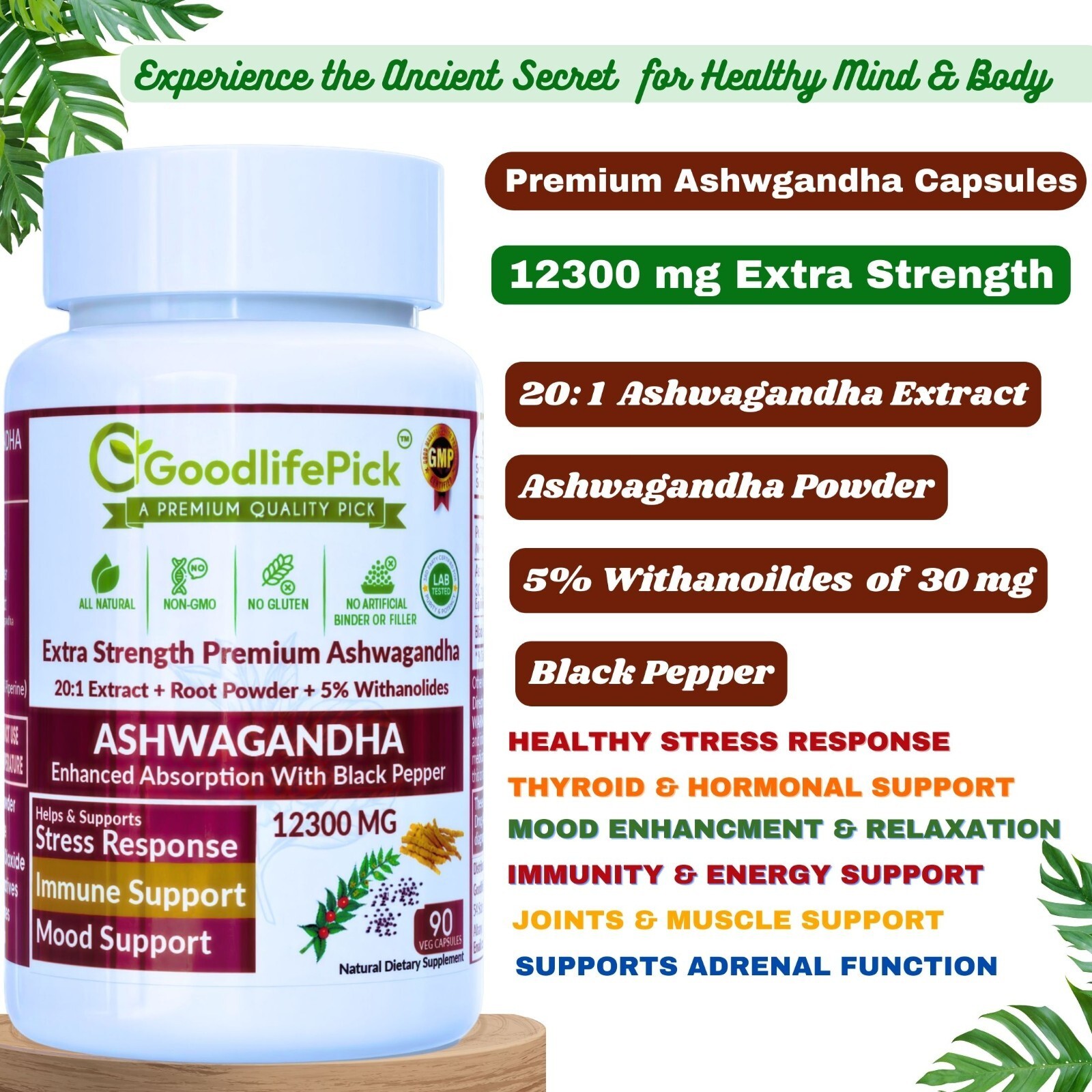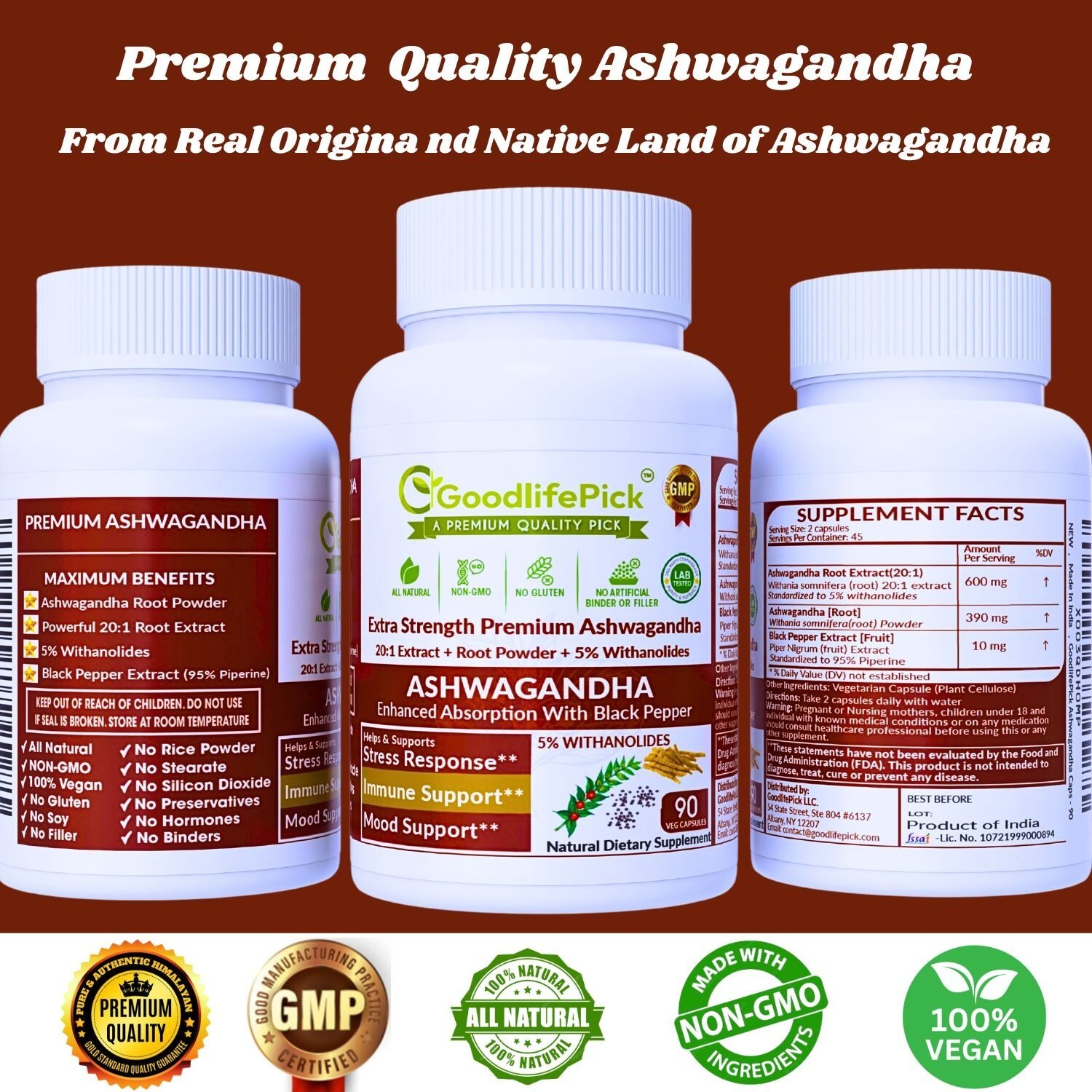 GoodLifePick Ashwagandha Capsules Ashwagandha Supplements are Made with Premium