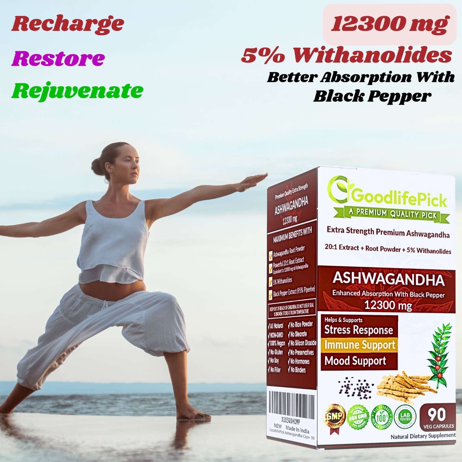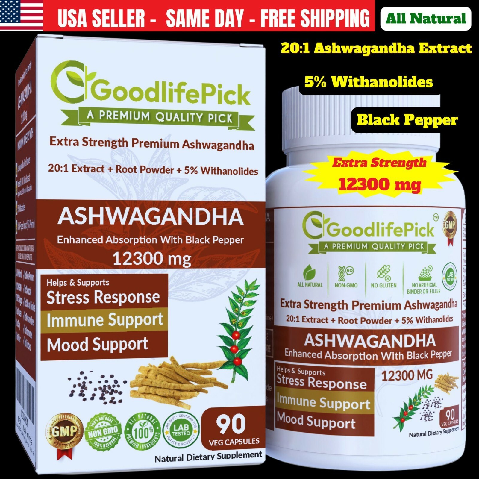 Best Ashwagandha 12300 mg with 5% Withanolides & Black Pepper-90ct Max Benefits