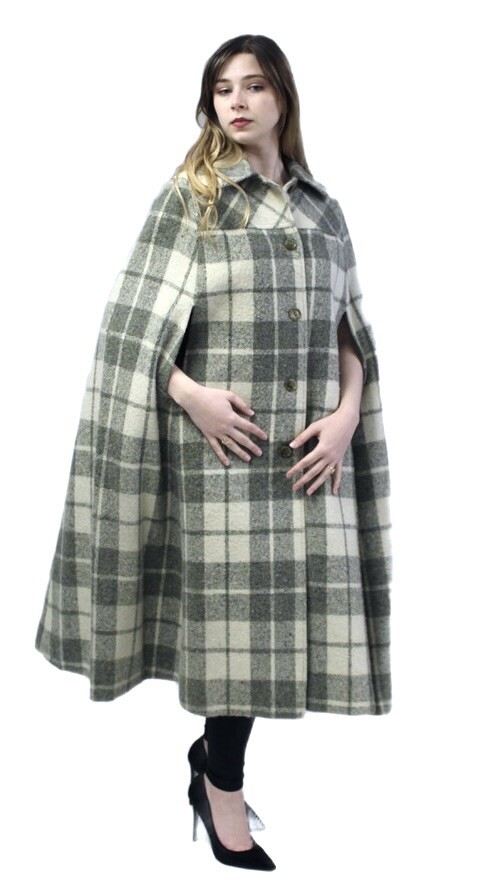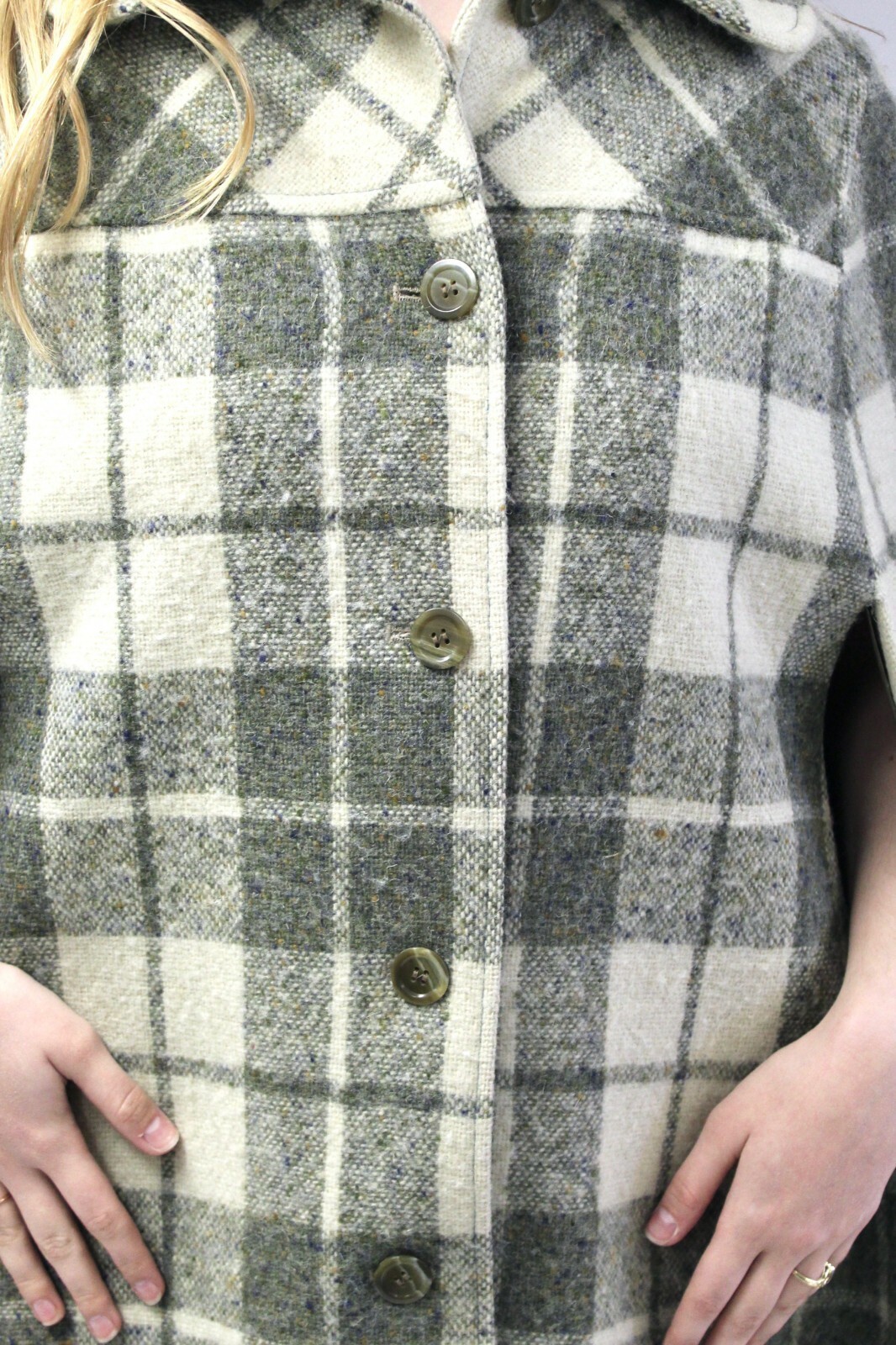 Jimmy Hourihan Dublin Ireland Vintage Donegal Green Plaid Tweed Wool Cape OS