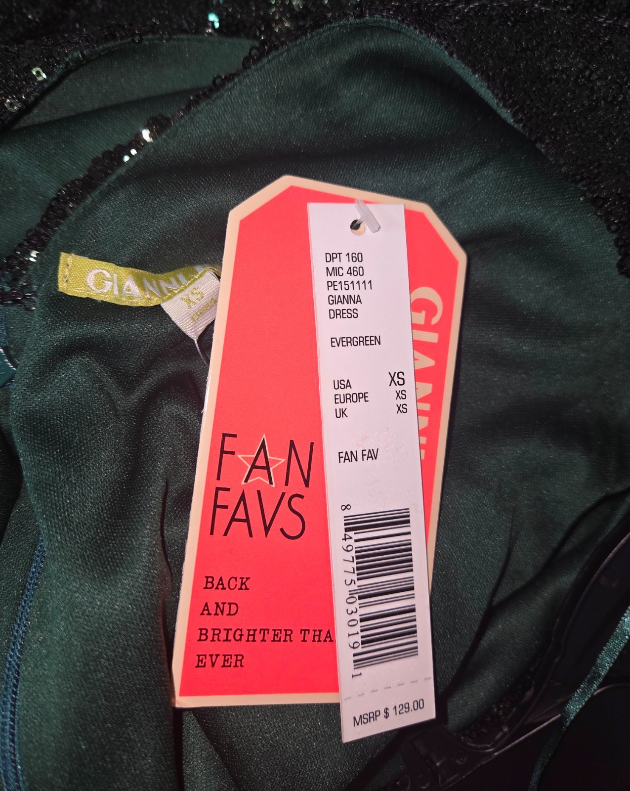 Gianni Bini GIANNA Green Sequin Party 3/4 Sleeve Dress Size XS NEW Retail $129