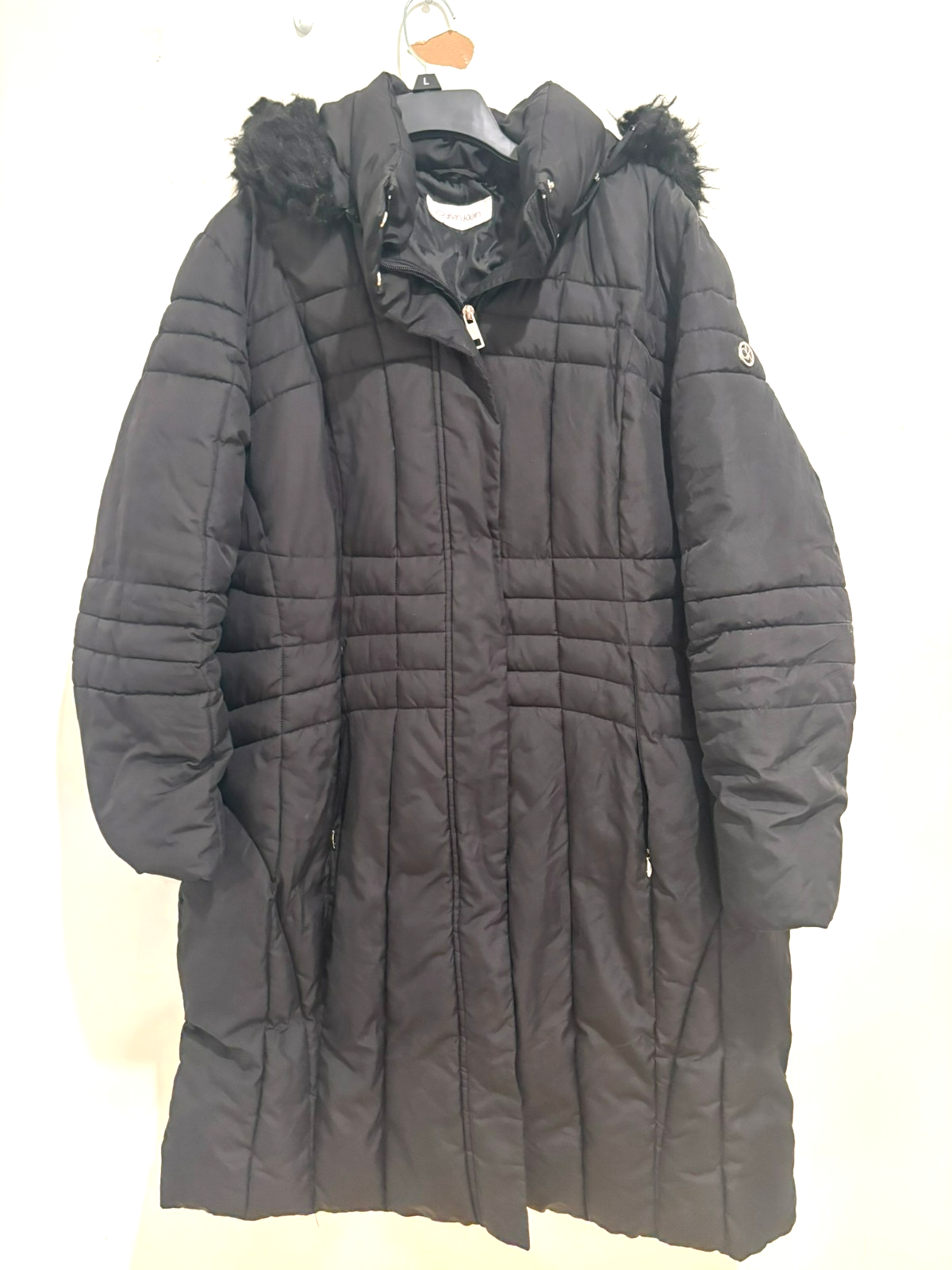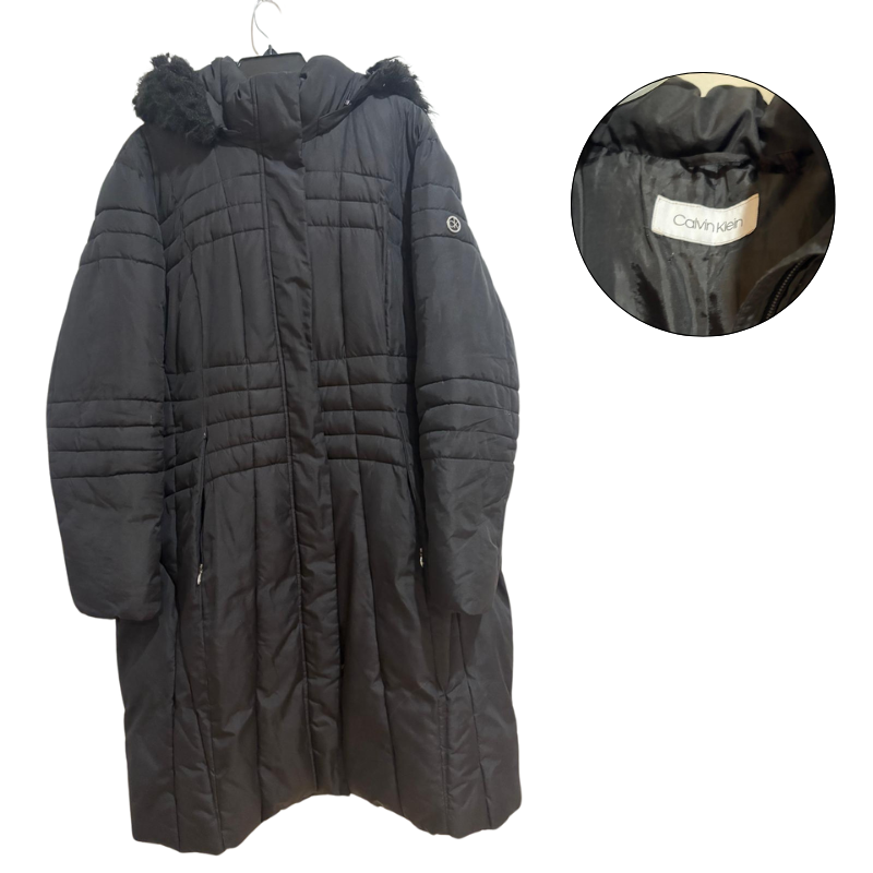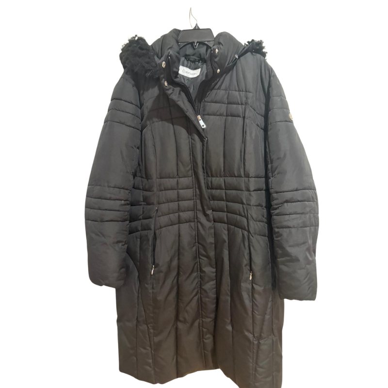 Calvin Klein Women's Black Puffer Coat Hooded Faux Fur Trim 2XL