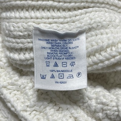 Lands End Cable Knit Fisherman Turtleneck Sweater Size L Ivory Cotton Classic