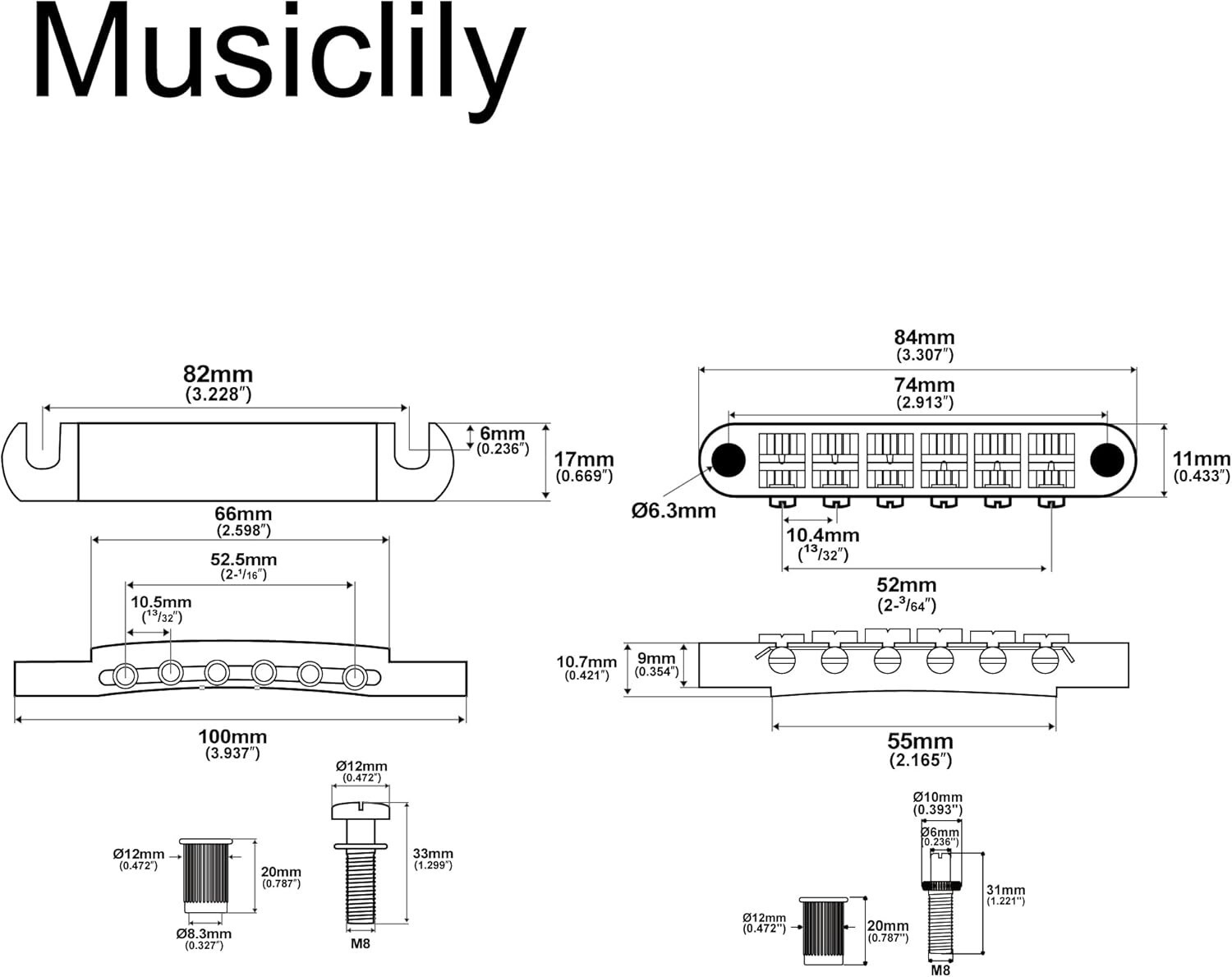 Enhance your Epiphone Les Paul or SG style electric guitar with this high-quality, gold-tone ABR-1 style Tune-o-matic bridge and tailpiece set. Crafted from durable zinc alloy for stability and longevity, this full set includes all necessary studs and mounting accessories for a seamless upgrade. Designed with precise measurements?bridge string spacing of 52mm and tailpiece spacing of 52.5mm?it ensures a perfect fit for your guitar, contributing to improved sound and playability.