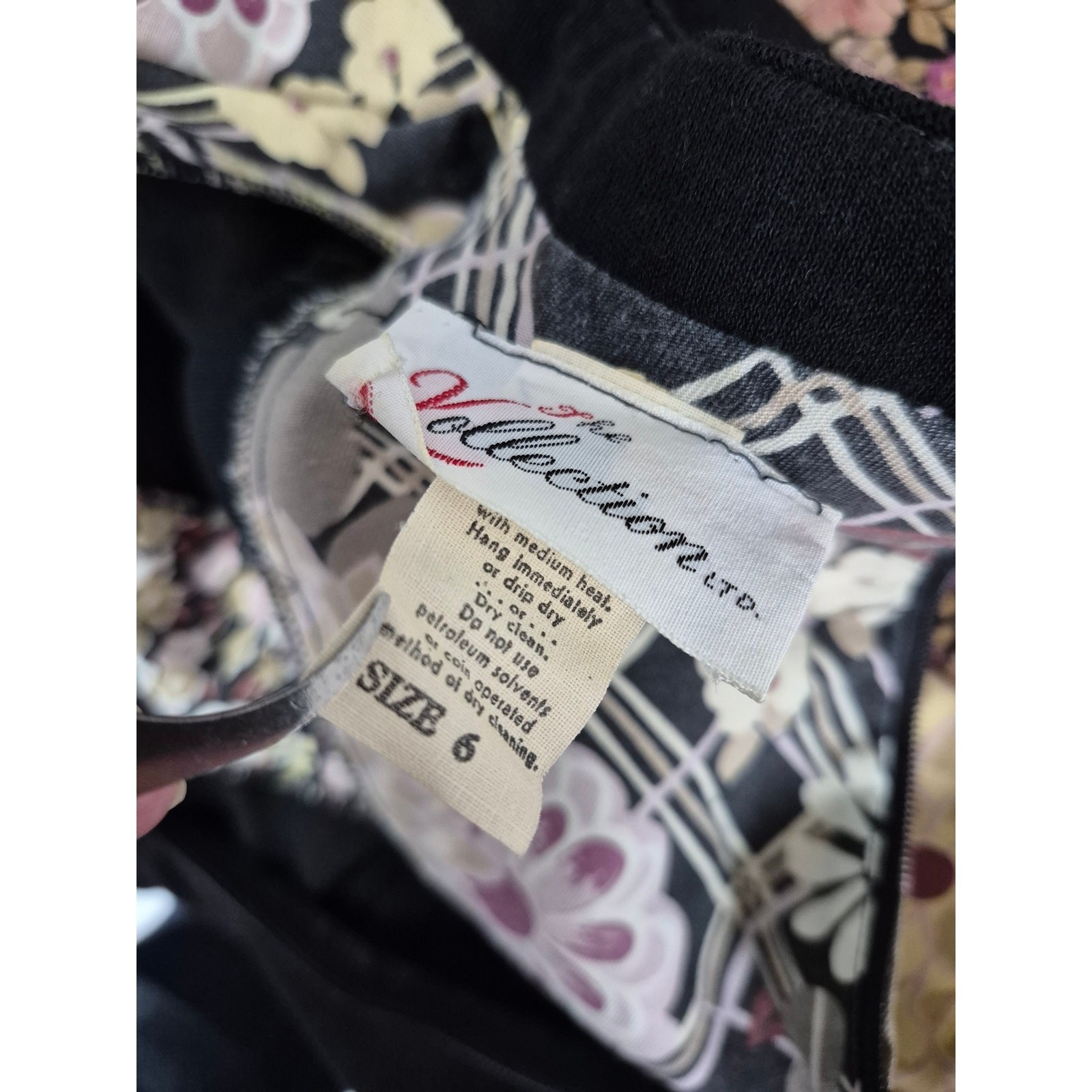 Vtg 70s The Kollection Ltd ( Saks Fifth Ave)Black Dress Floral Tie Front Top S/6
