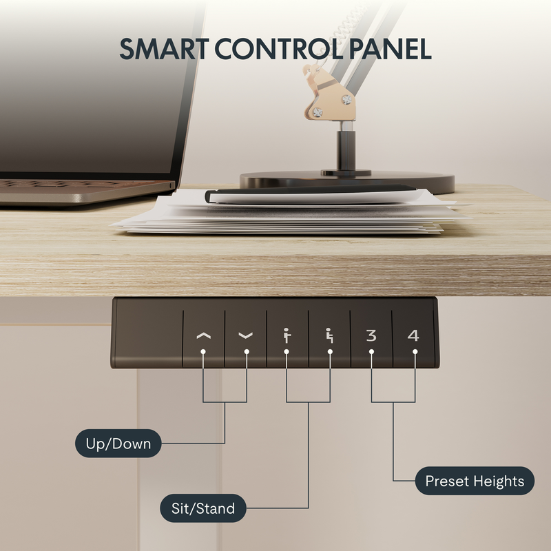 ?Eelectric Height Adjustable Lift System?: Easily adjust from 29" to 46.6" to accommodate sitting and standing positions, catering to various user needs and preferences. Equipped with 6 buttons, including up and down adjustment, standing and sitting position presets, and two customizable height memory settings for effortless operation.
