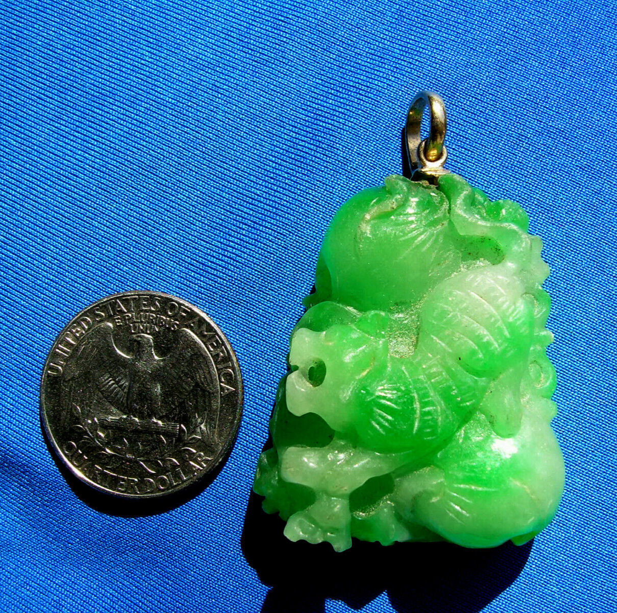 Earth mined Green Jadeite Jade semi translucent Pendant Lucky 18k Gold Medallion