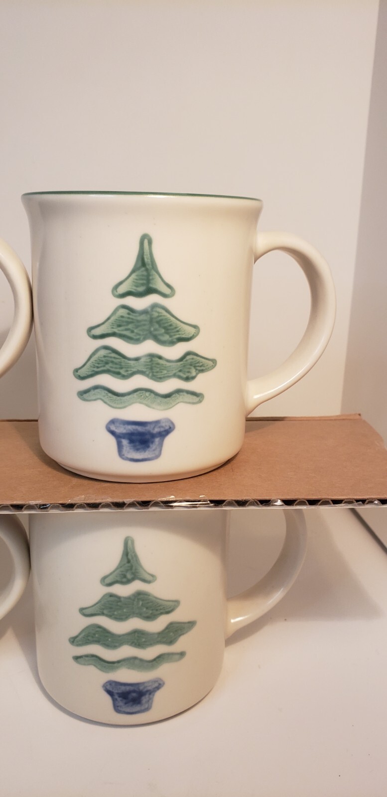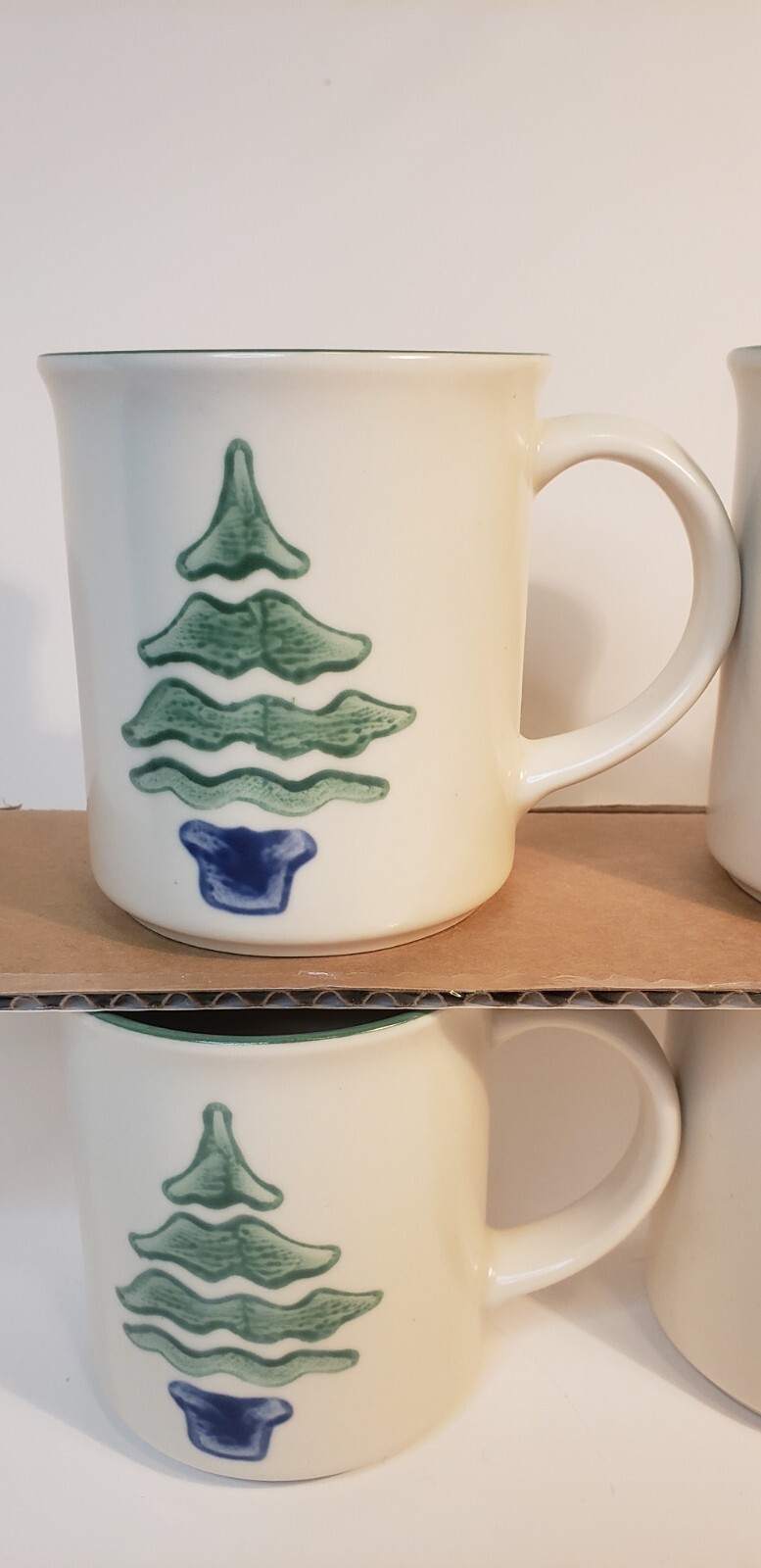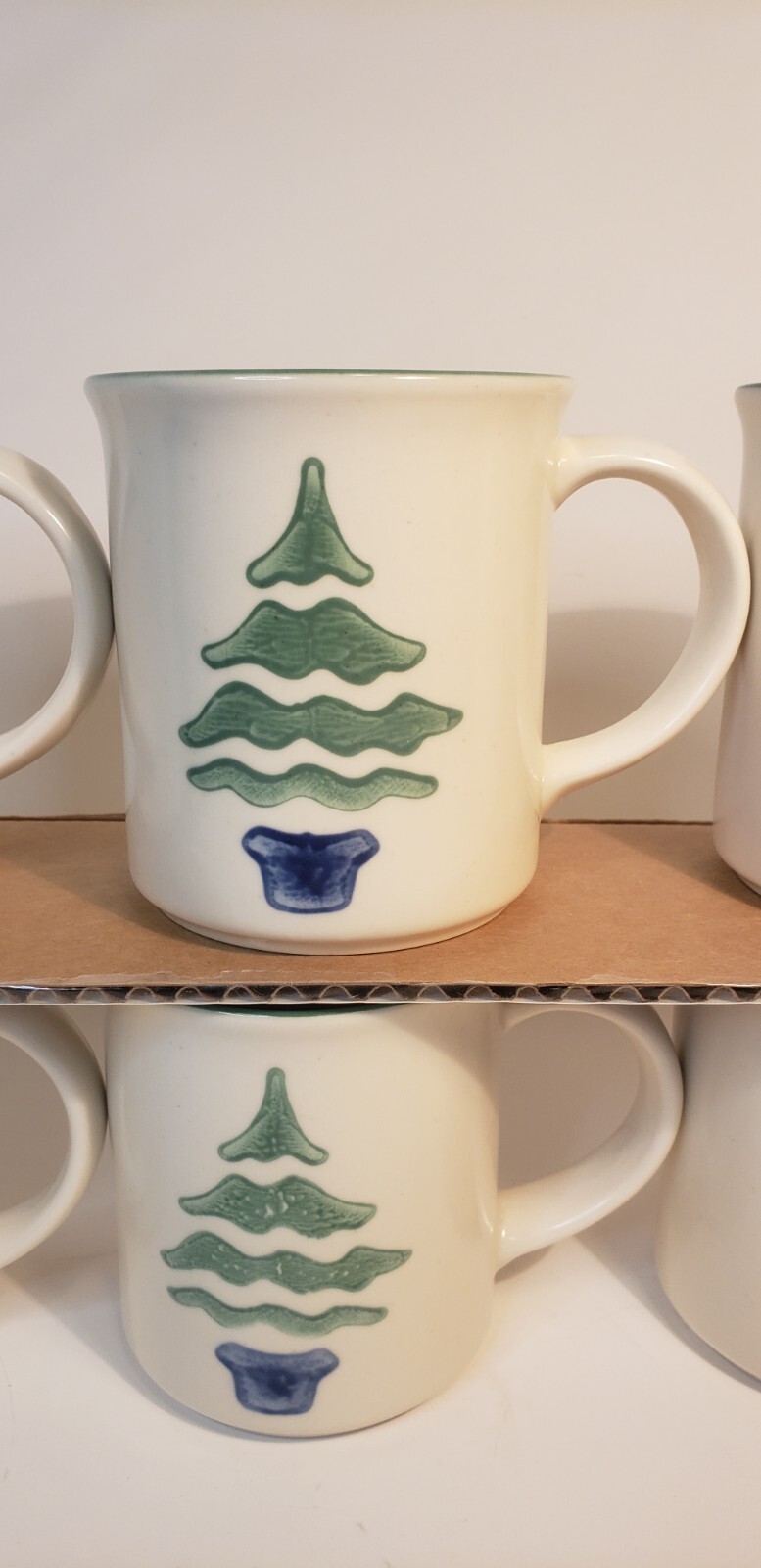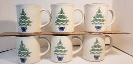 Pfaltzgraff Nordic Christmas Coffee Mugs Set of 6 Tree Pattern 10oz Stoneware