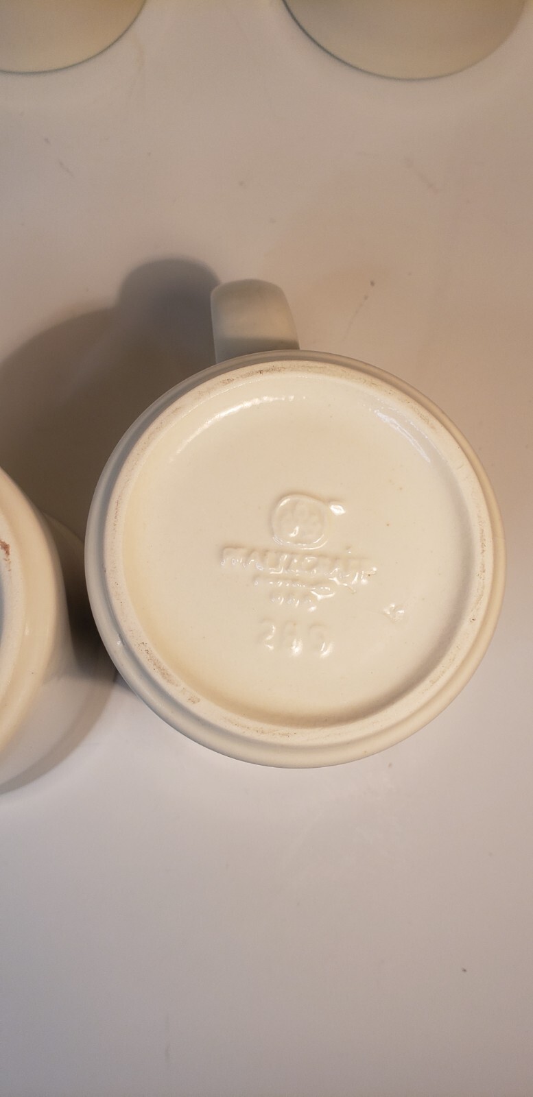 Pre-owned and in very good condition, showing only light utensil marks from use. No chips, cracks, or major wear. A great companion to Nordic Christmas dinner plates or as a standalone set of festive mugs.