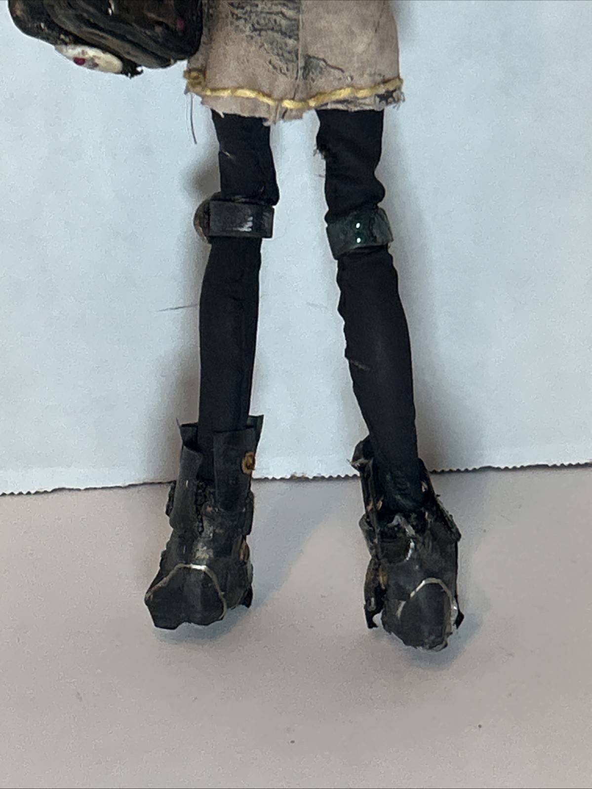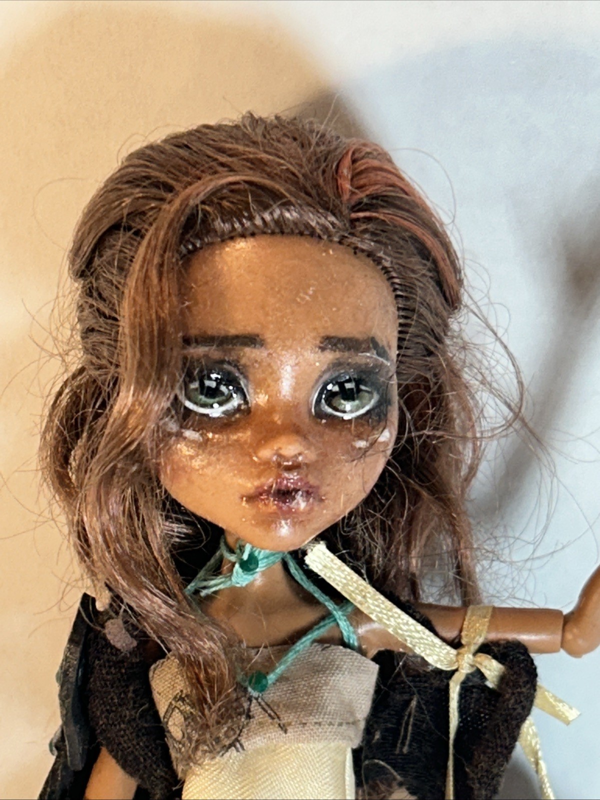 The OOAK Custom Repaint Monster High Doll BJD with Steampunk or Cyberpunk Influence is a one-of-a-kind fashion doll featuring a girl doll with brown wavy hair, medium dark complexion, and comes as a single doll set. This original repainted Doll from the Monster High franchise is perfect for collectors and fans looking for a unique and custom addition to their doll collection, combining elements of steampunk or cyberpunk aesthetics. The OOAK features make this doll a standout piece for those seeking a rare and special addition to their dolls and bears collection.