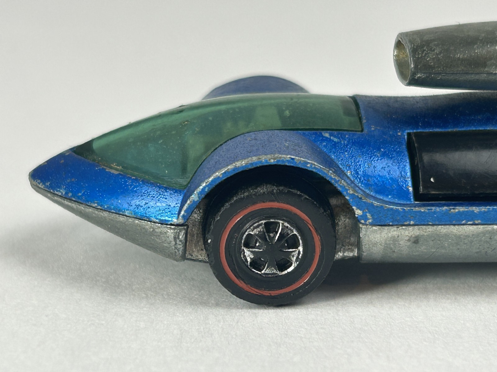 Color: Spectraflame Blue body with green tinted windshield and unpainted metal rocket on top