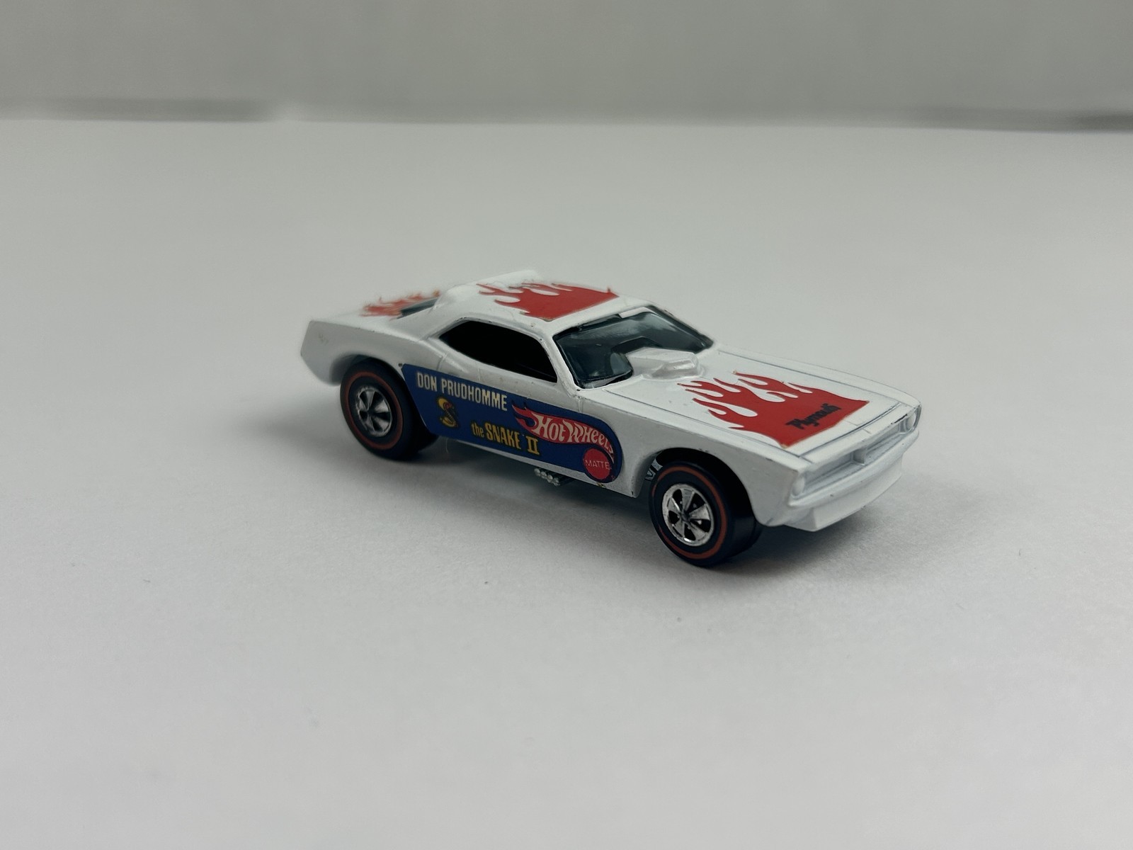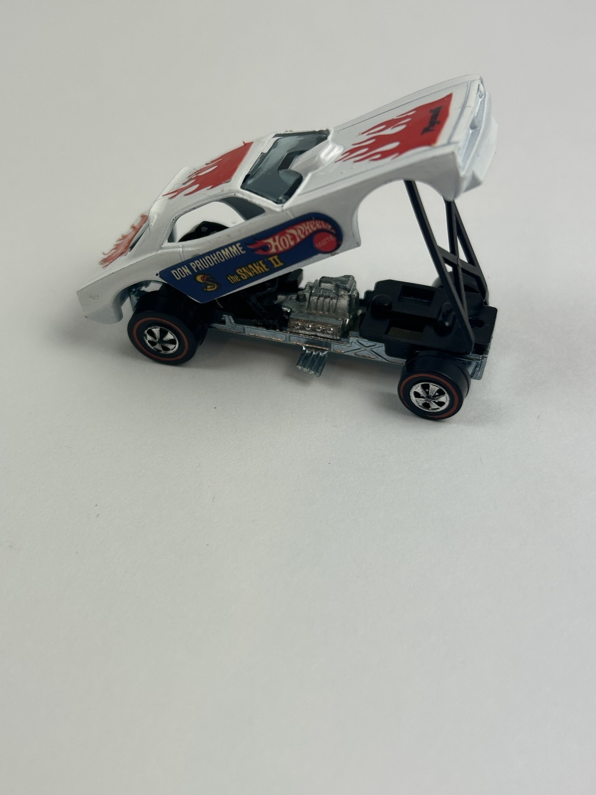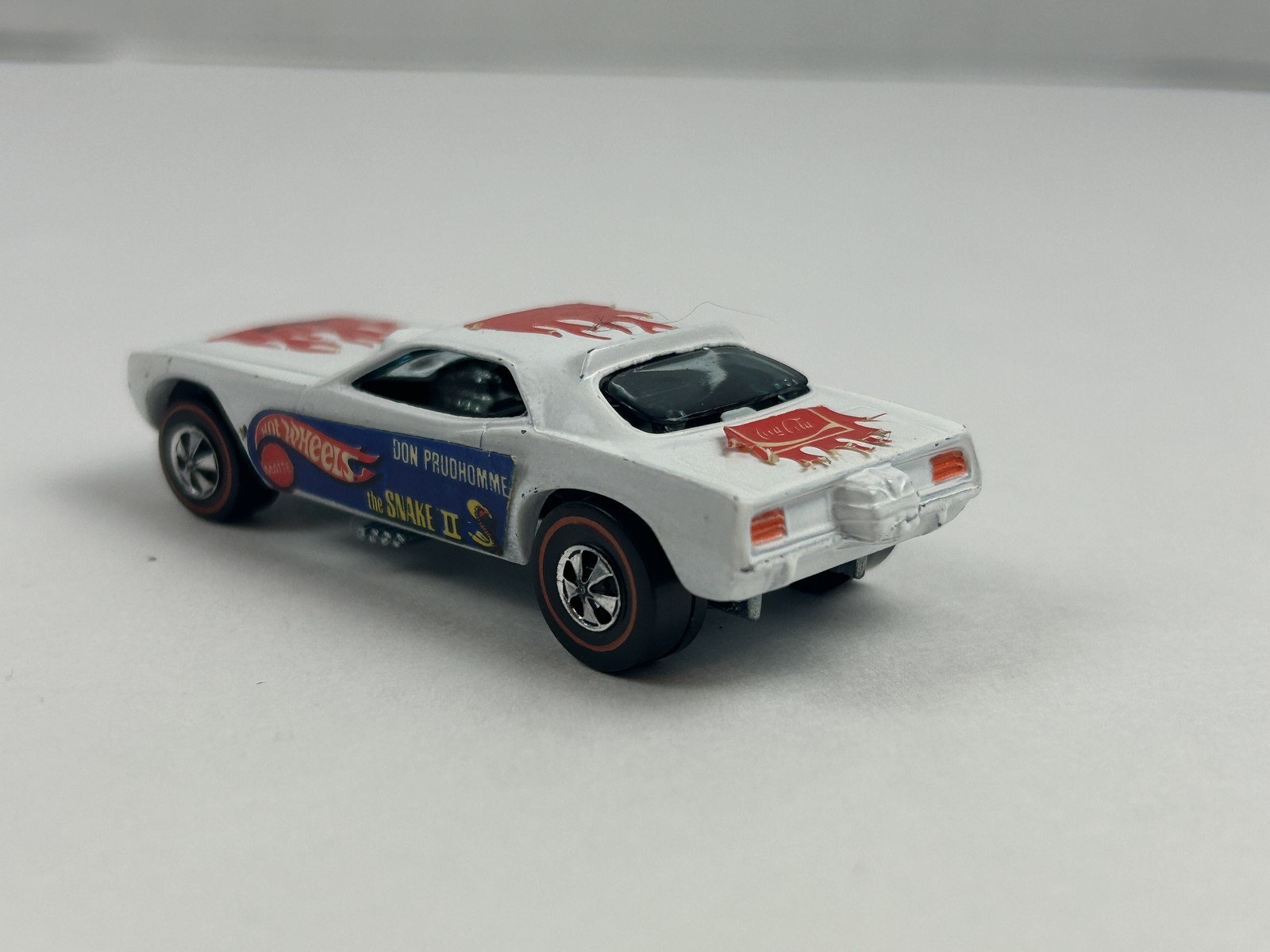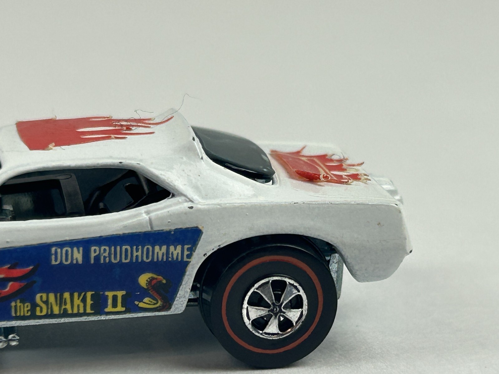 Vintage Hot Wheels Snake II Don Prudhomme White Redline Car Mattel Button 1969
