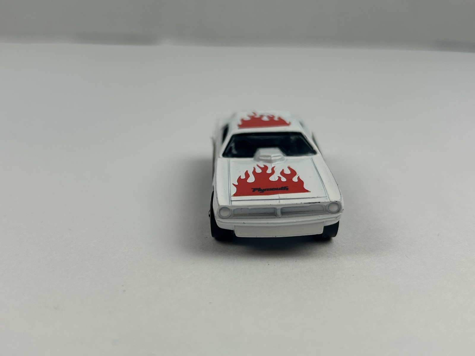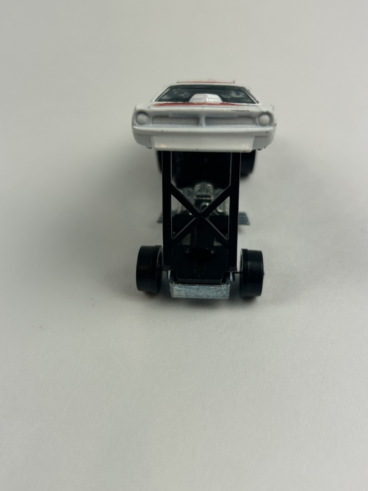 Body style: Plymouth Barracuda drag funny car with opening lift-up body to reveal detailed engine and chassis.
