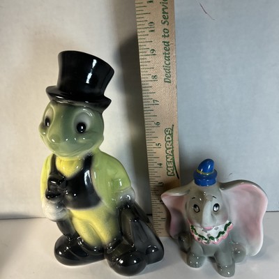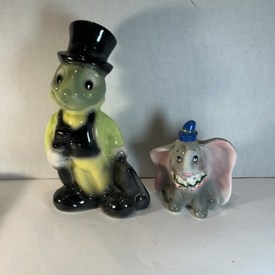 Vintage Walt Disney Prod Jiminy Cricket & Dumbo Ceramic Figurines Pre-1986