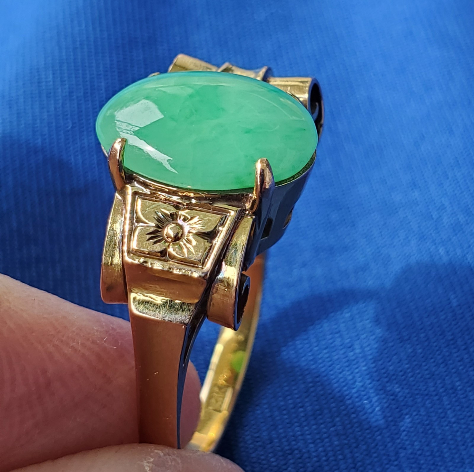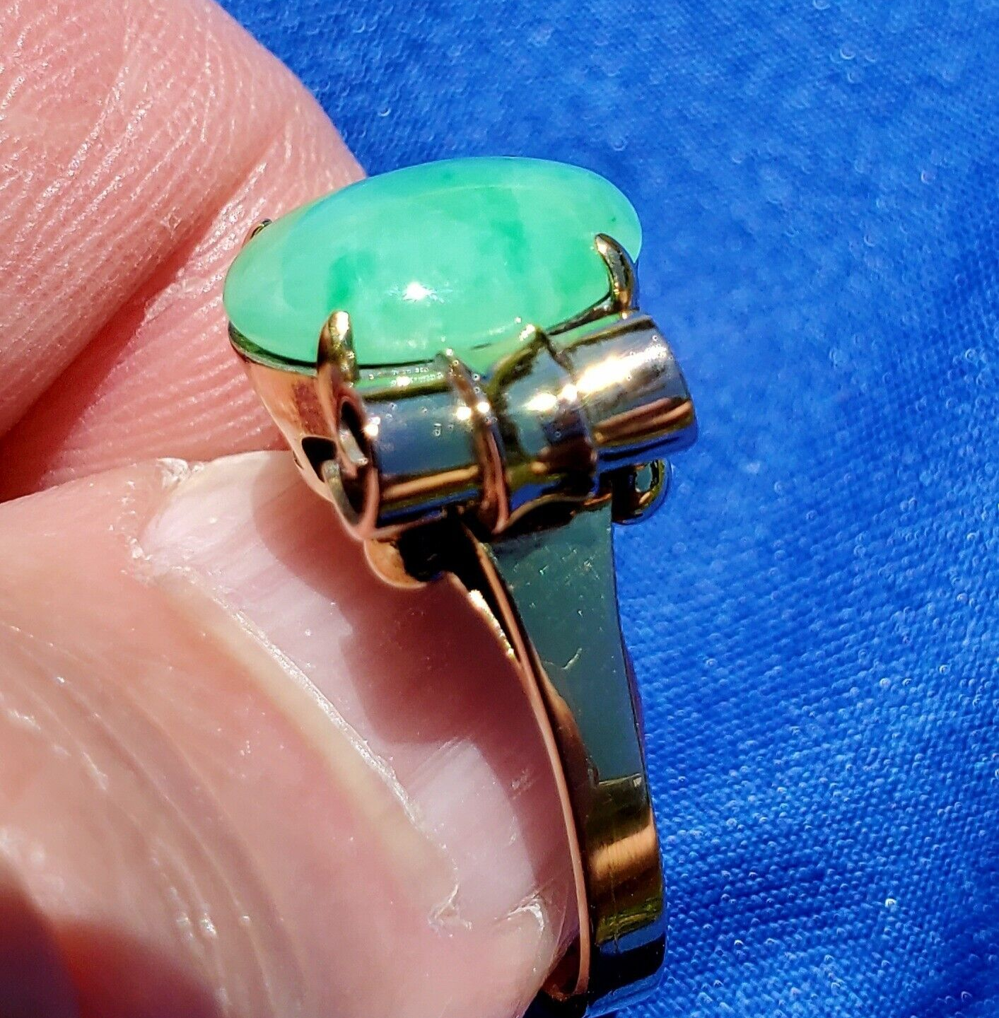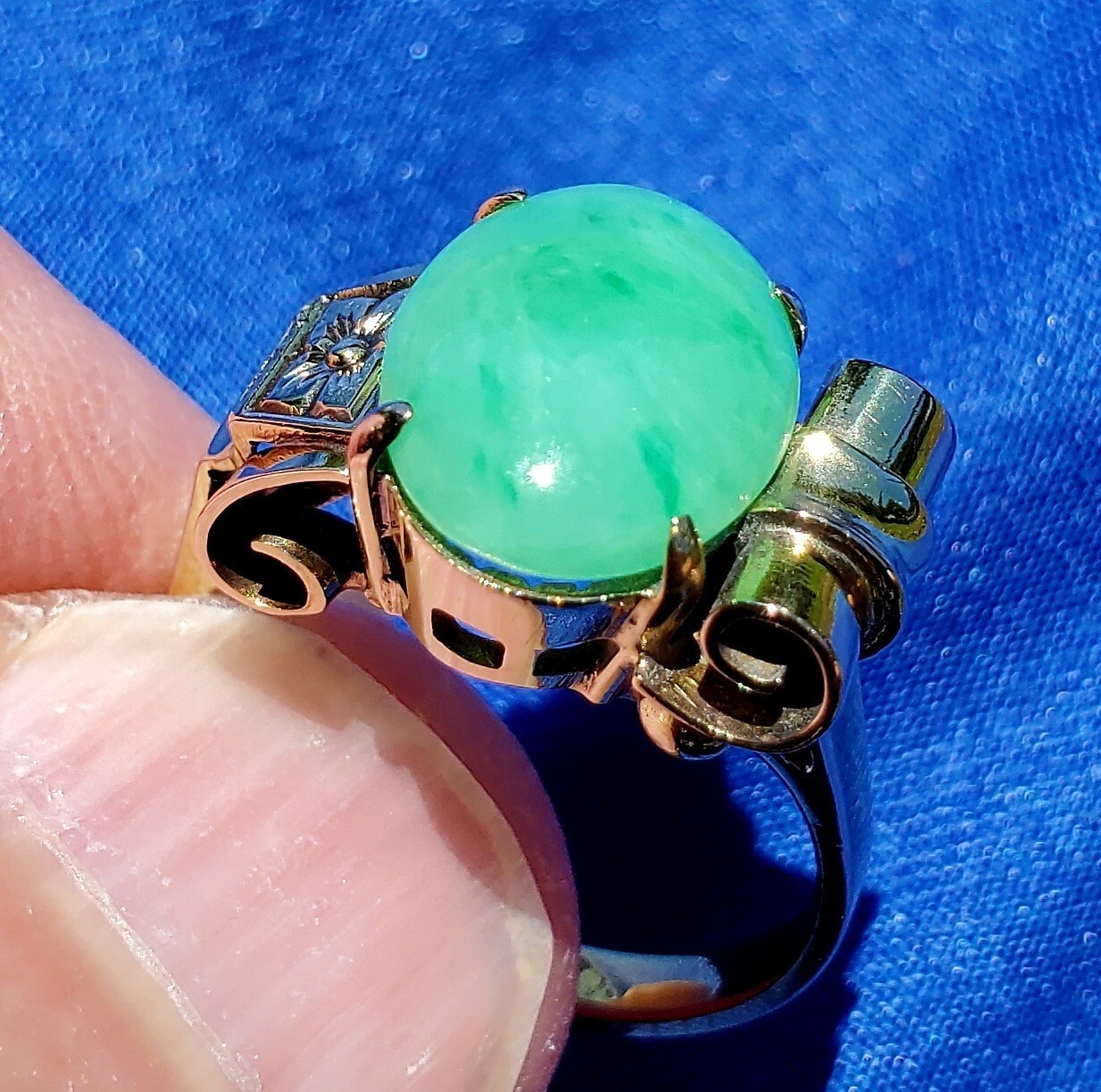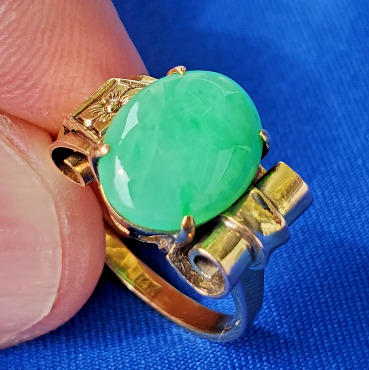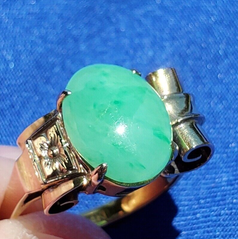 Earth mined Green Jadeite Jade Antique Engagement Ring 14k Solid Gold Statement