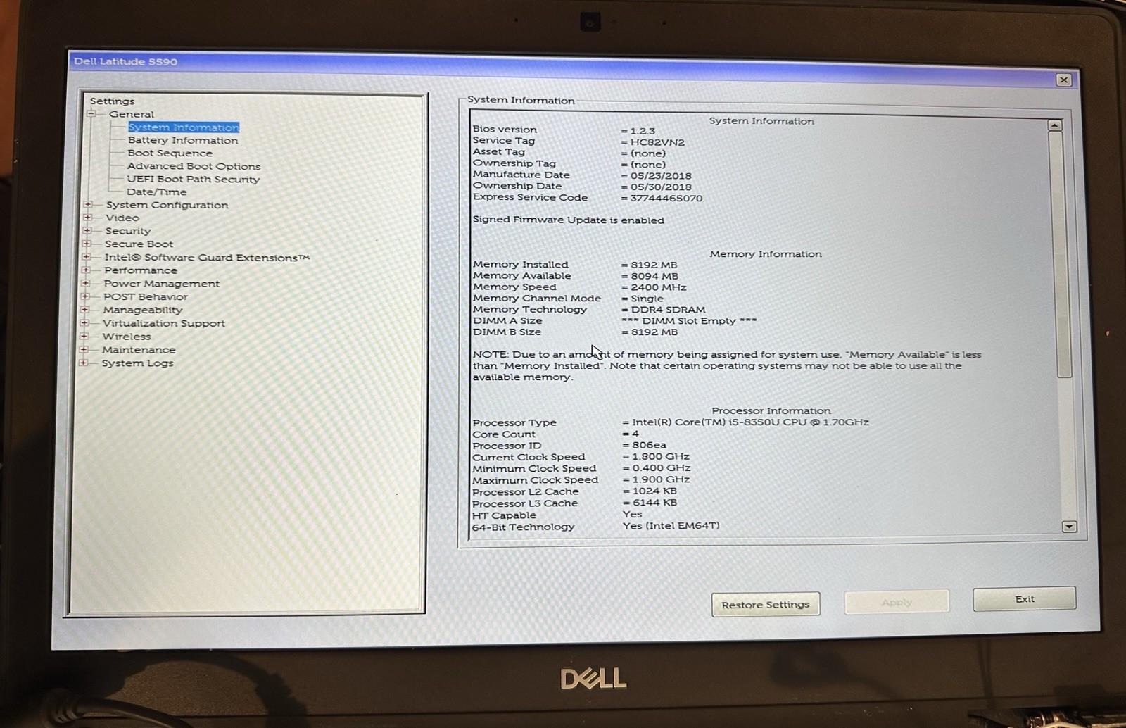 Dell Latitude 5590 Intel Core i5-8350U and 50 similar items