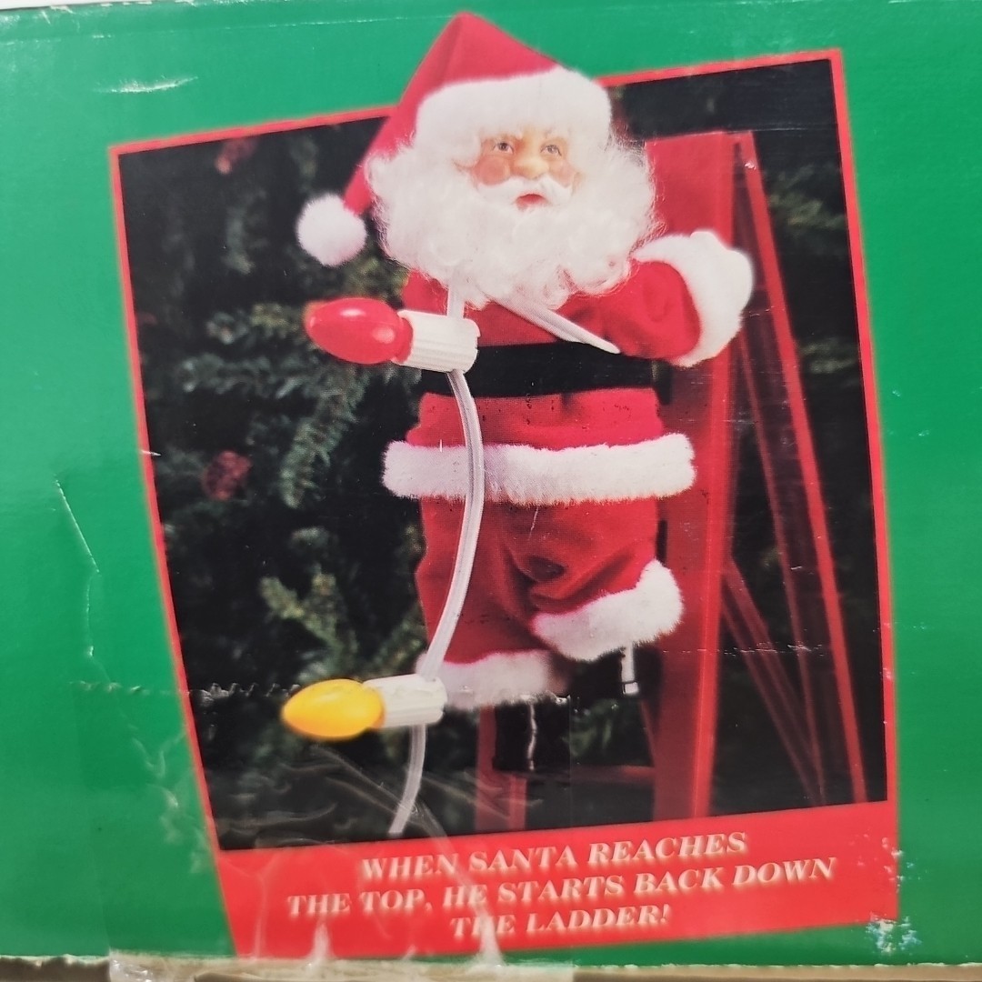 Vtg 94 Mr Christmas Stepping Santa Ladder Climbing Animated Musical Lights Works