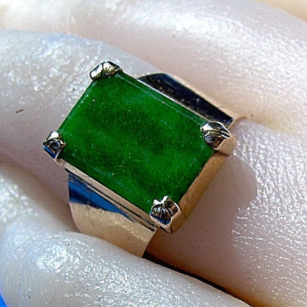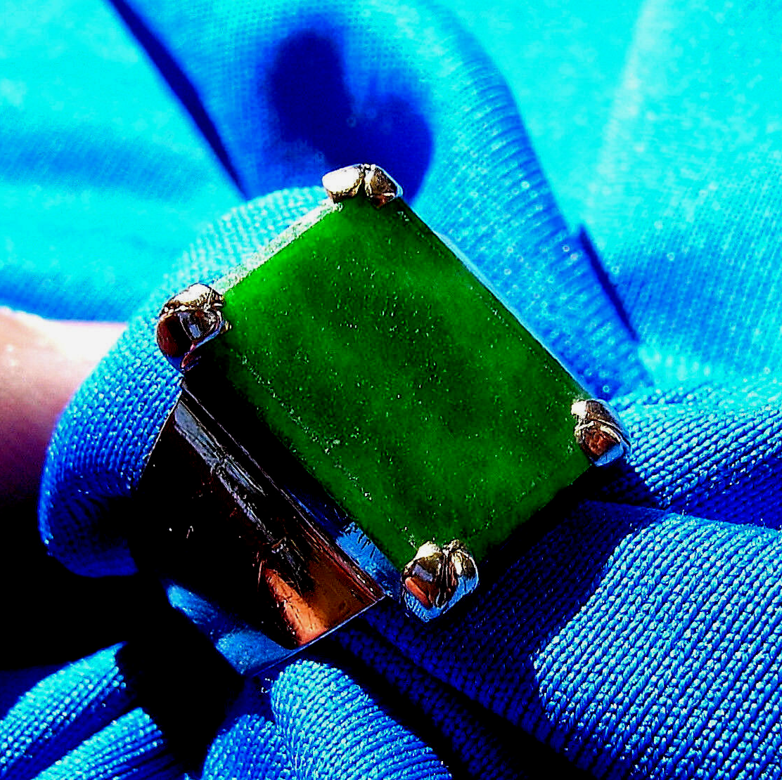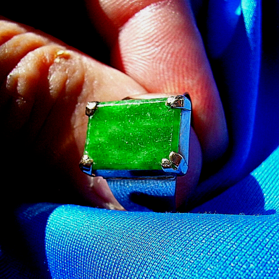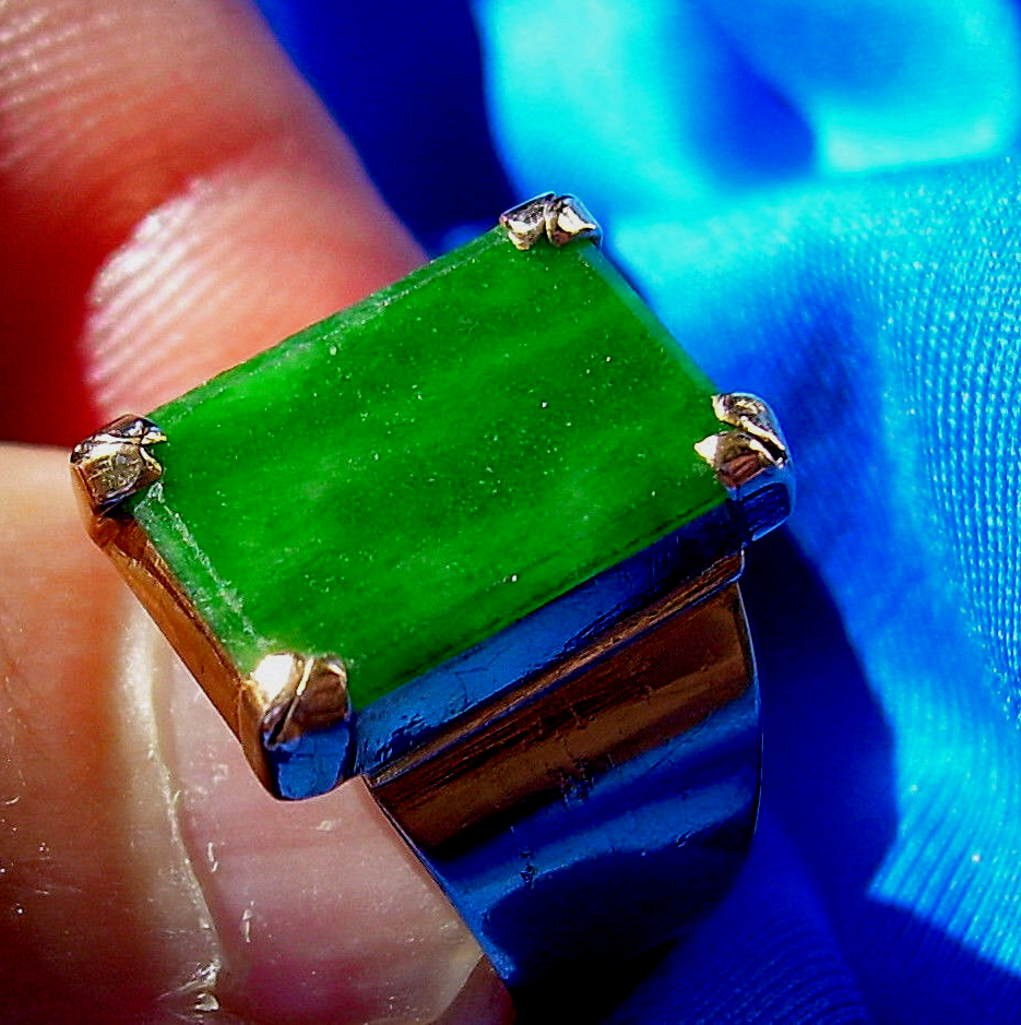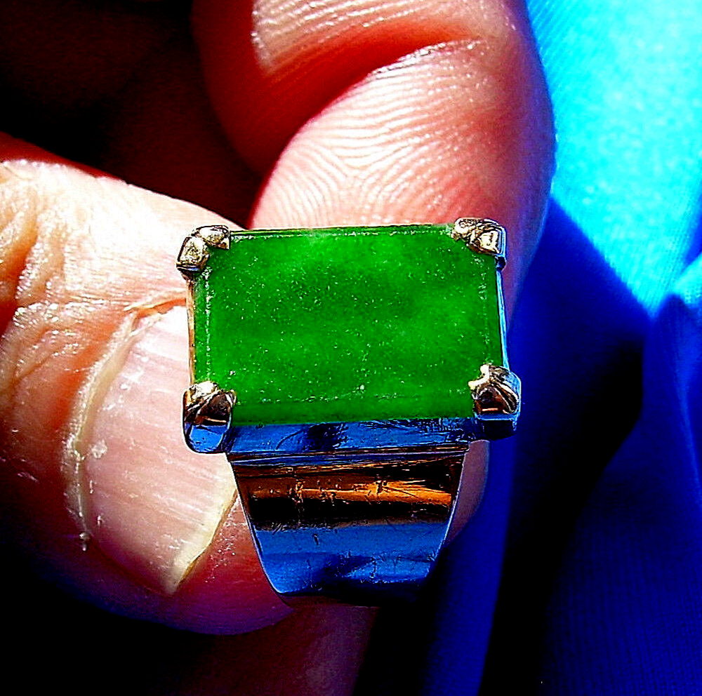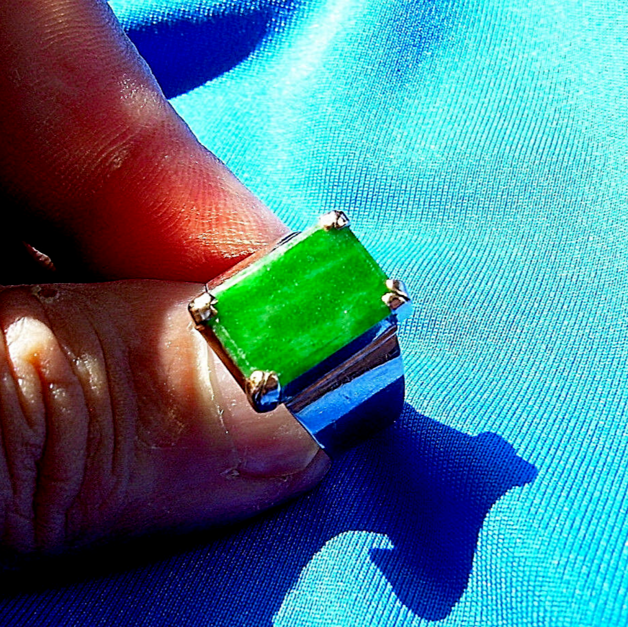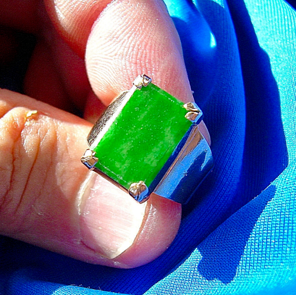 NATURAL EARTH- MINED JADEITE JADE ART DECO 18K ENGAGEMENT STATEMENT RING.