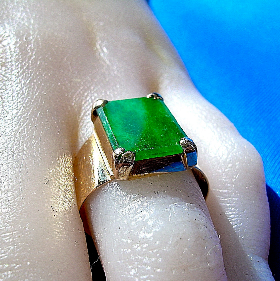Earth mined Jadeite Jade Antique Engagement Ring Victorian Deco Solid 18k Gold