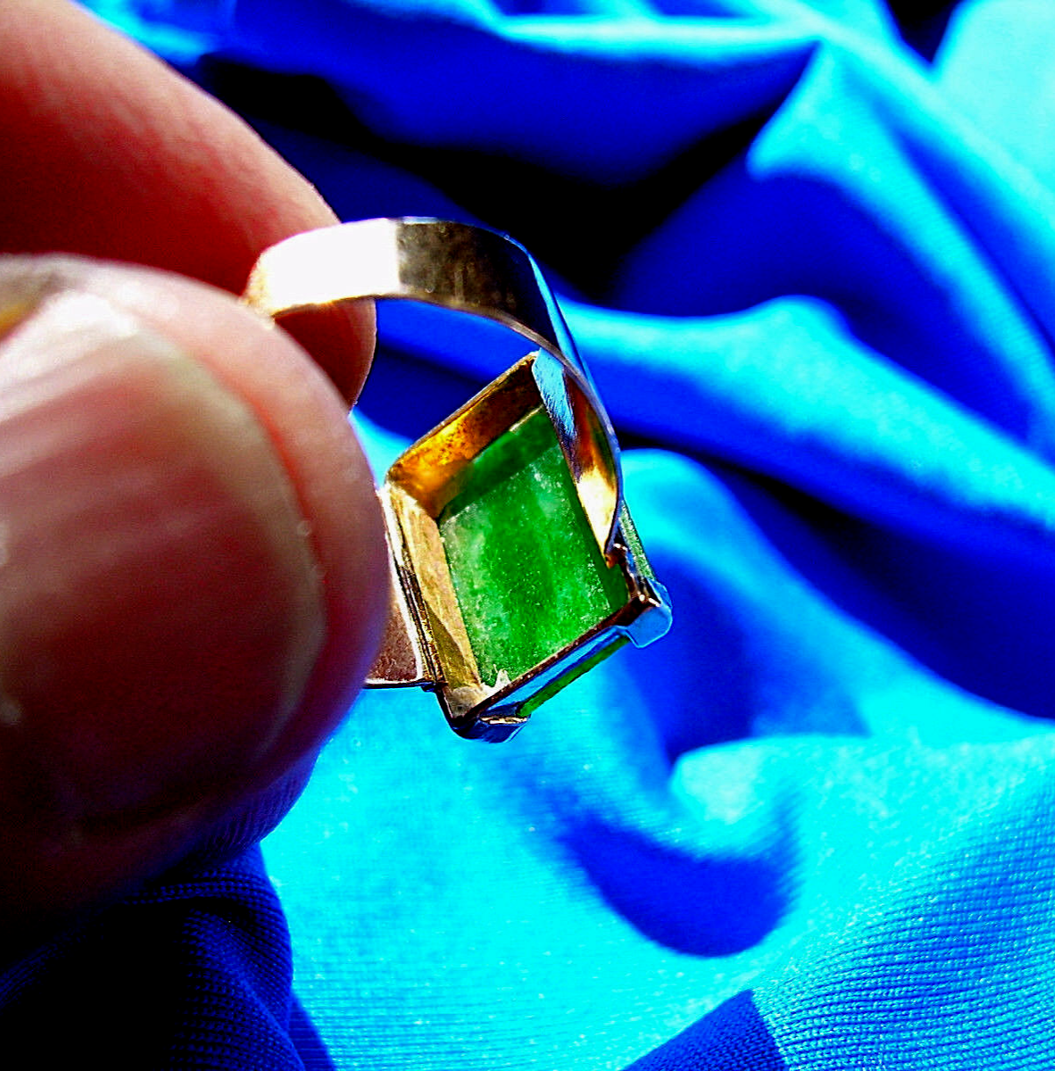 GENUINE IMPERIAL GREEN COLOR JADEITE JADE 18K GOLD SOLITAIRE.