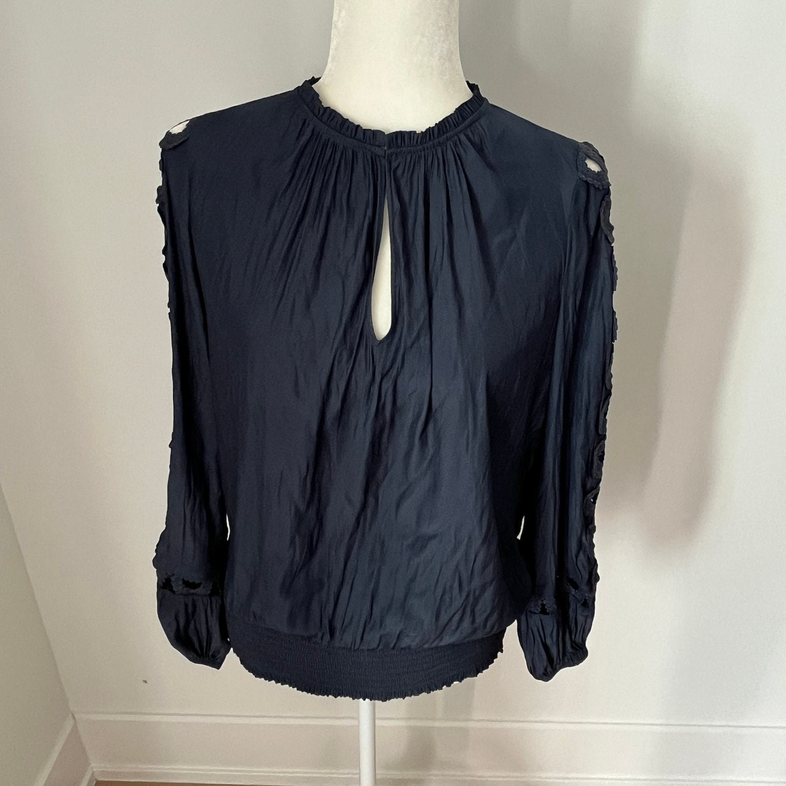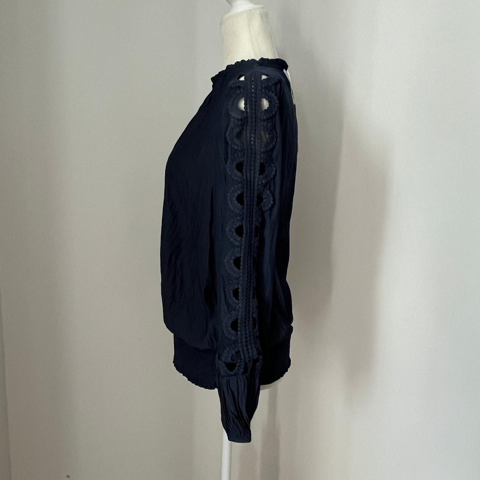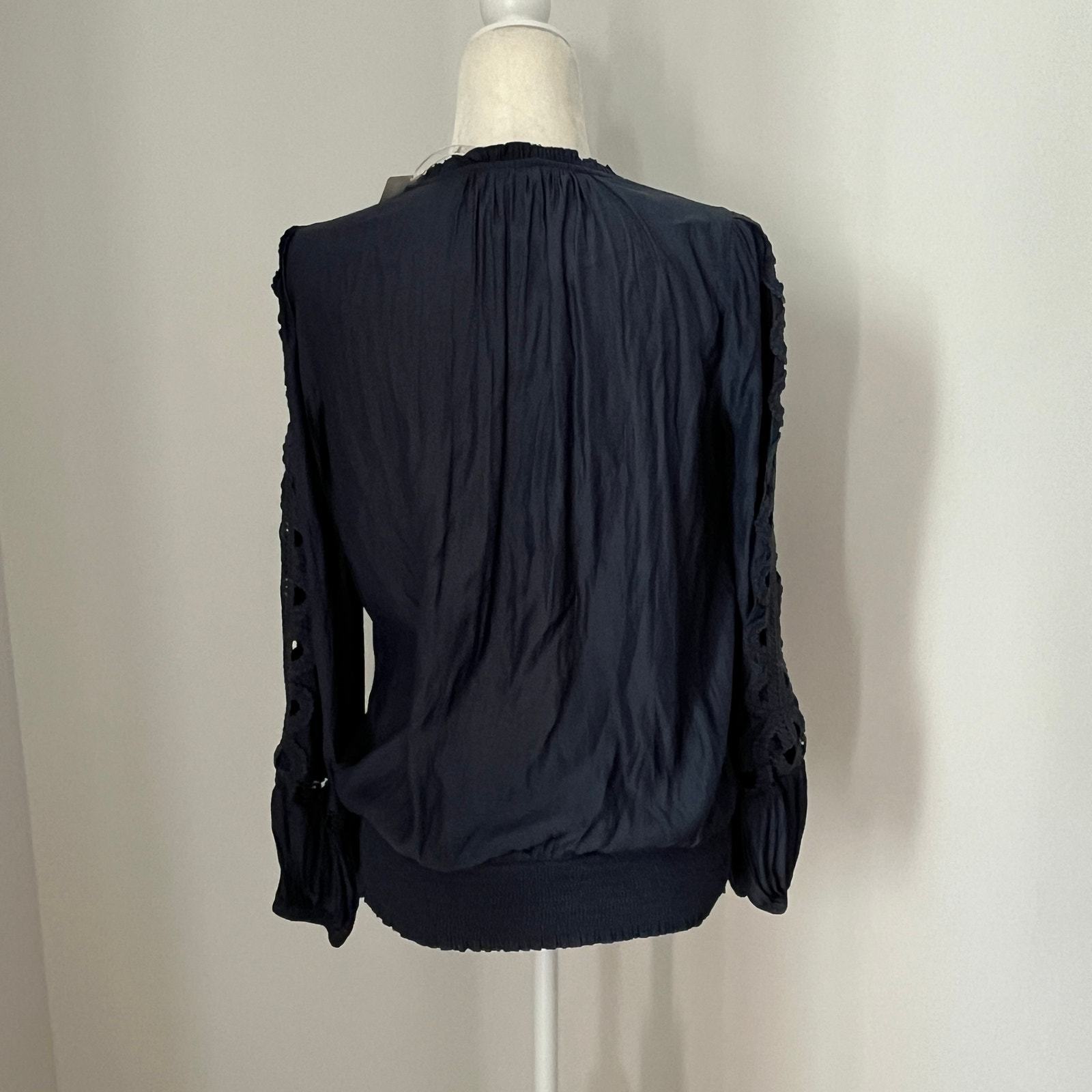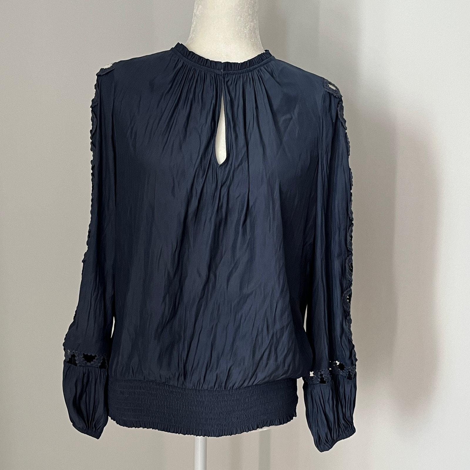 RAMY BROOK Bri Eyelet Lace Sleeve Blouse Navy NWT $325