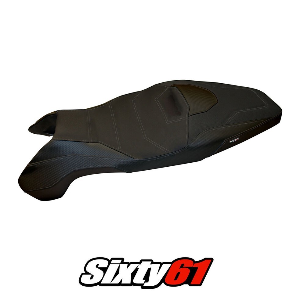 Introducing the Tappezzeria Italia ULTRAGRIP Motorcycle Seat Cover ? the ultimate solution for riders seeking enhanced grip and control. Crafted with a unique ULTRAGRIP material in the central seat, this seat cover has been rigorously tested and proven to significantly increase grip. Especially well-suited for Super Sports bikes, these seat covers empower riders with superior mastery during leans and maneuvers.