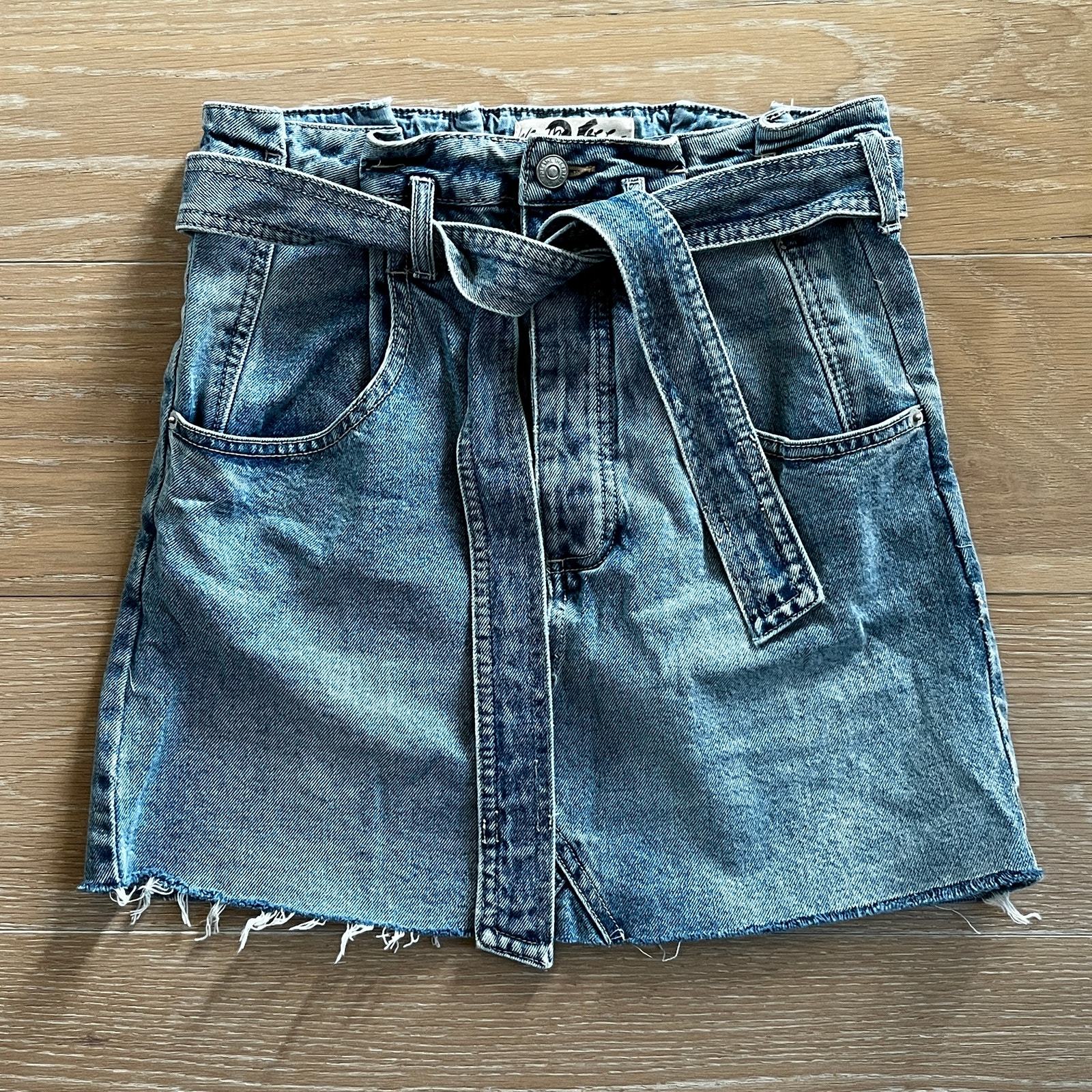 We the Free People East of Eden Medium Wash Denim Belted Mini Skirt 26