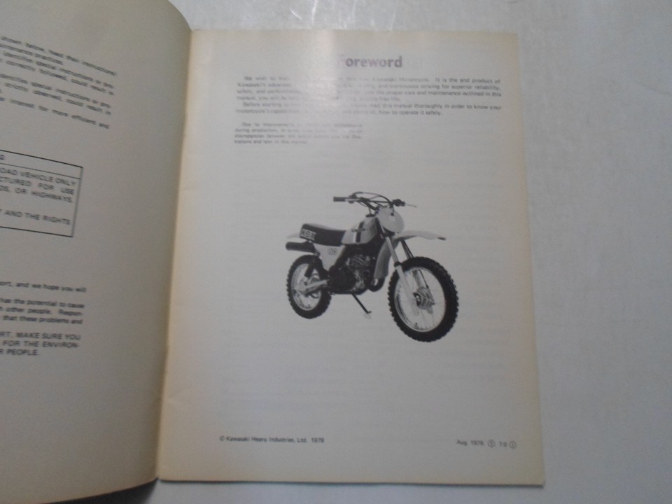 1980 Kawasaki KDX80 Motorcycle Owners Manual and 48 similar items