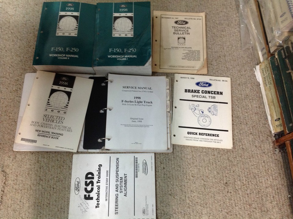 1998 Ford F-150/250 Manuel de service d'usine 2 ensemble de volumes, manuel de bulletin de service technique, manuel de reference rapide TSB special, manuel de formation et complement de gaz naturel compresse