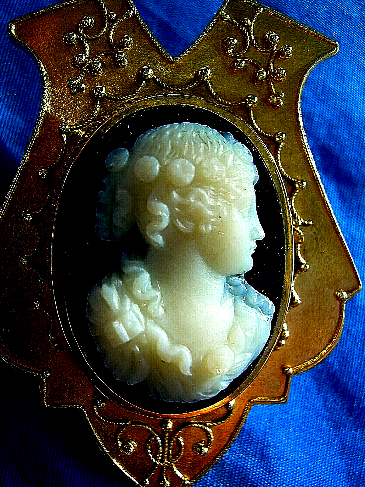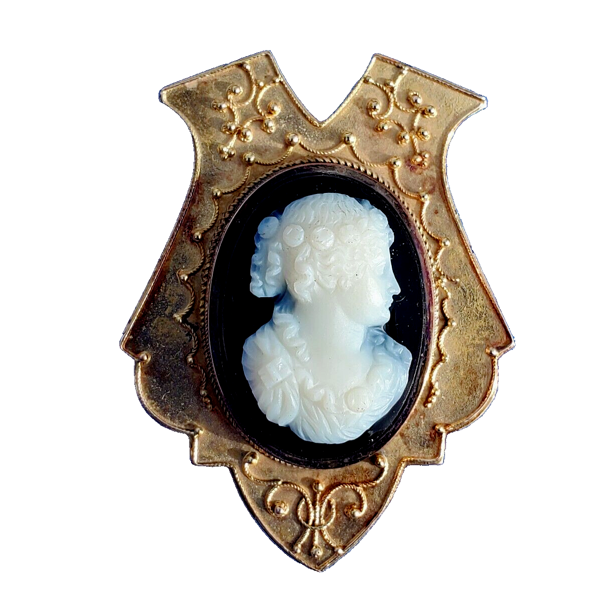 Victorian Memory Locket Brooch Antique 14k Gold Deco Hard Stone Onyx Cameo Pin
