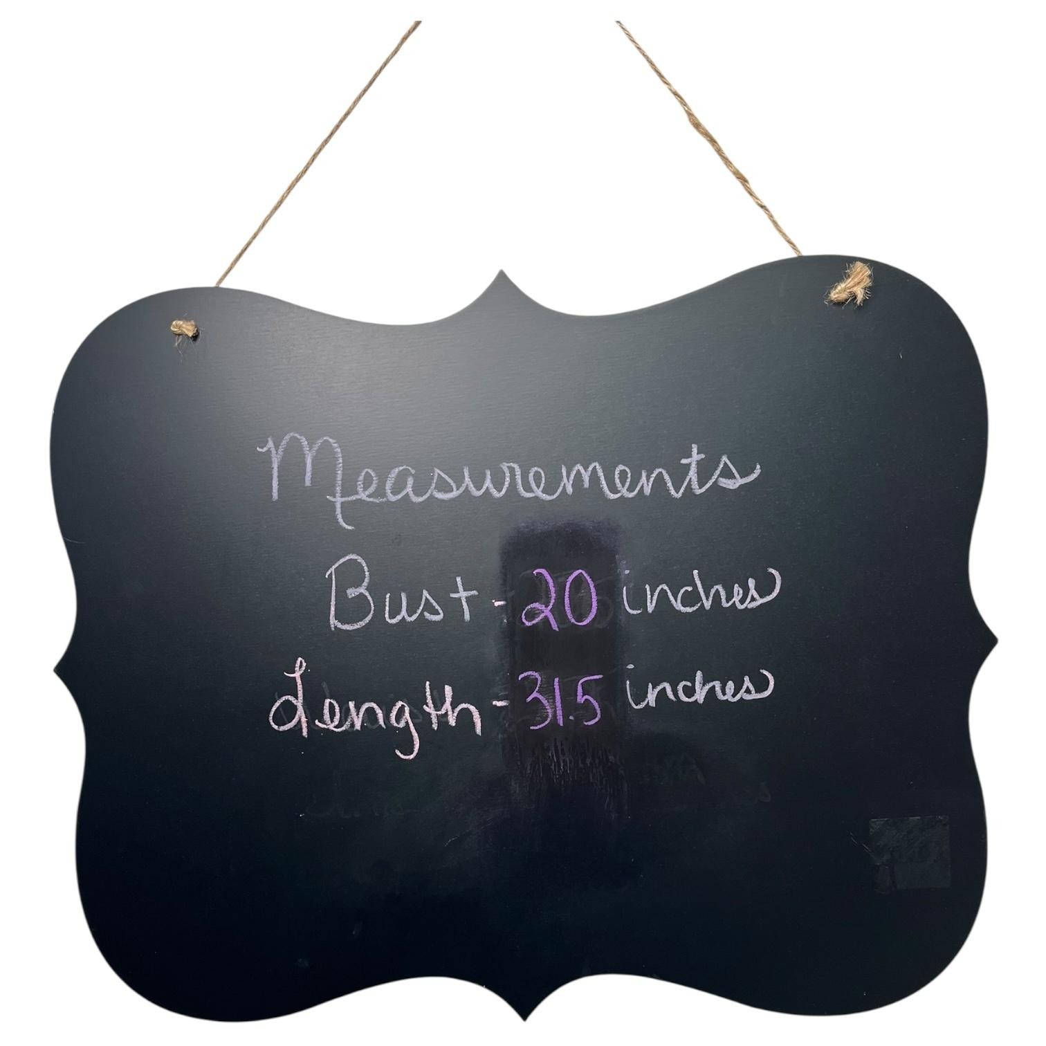 Approximate flat measurements: Bust - 20 inches, Length - 31.5 inches