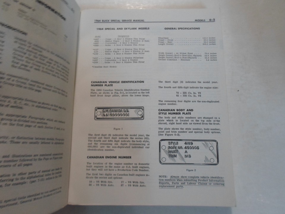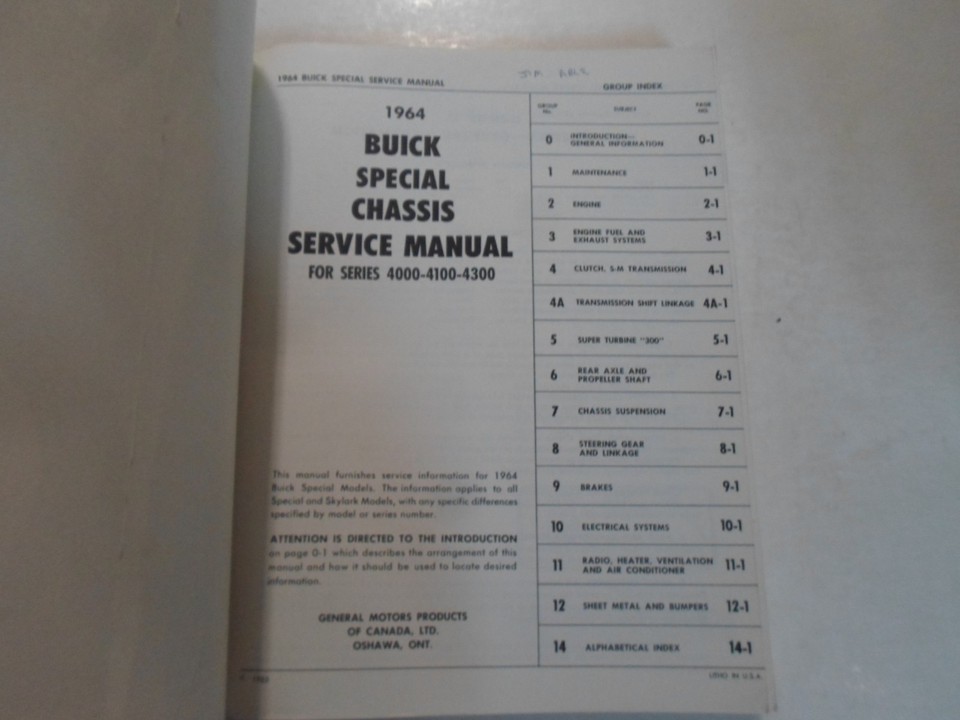 1964 Buick SPECIAL SKYLARK DELUXE CHASSIS SERVICE MANUAL MINOR WATER DAMAGE