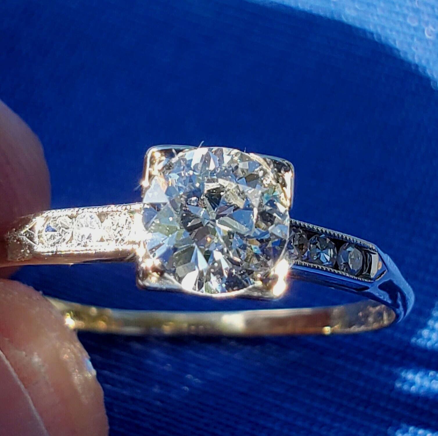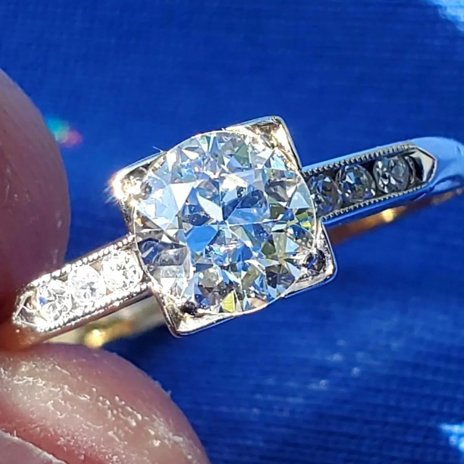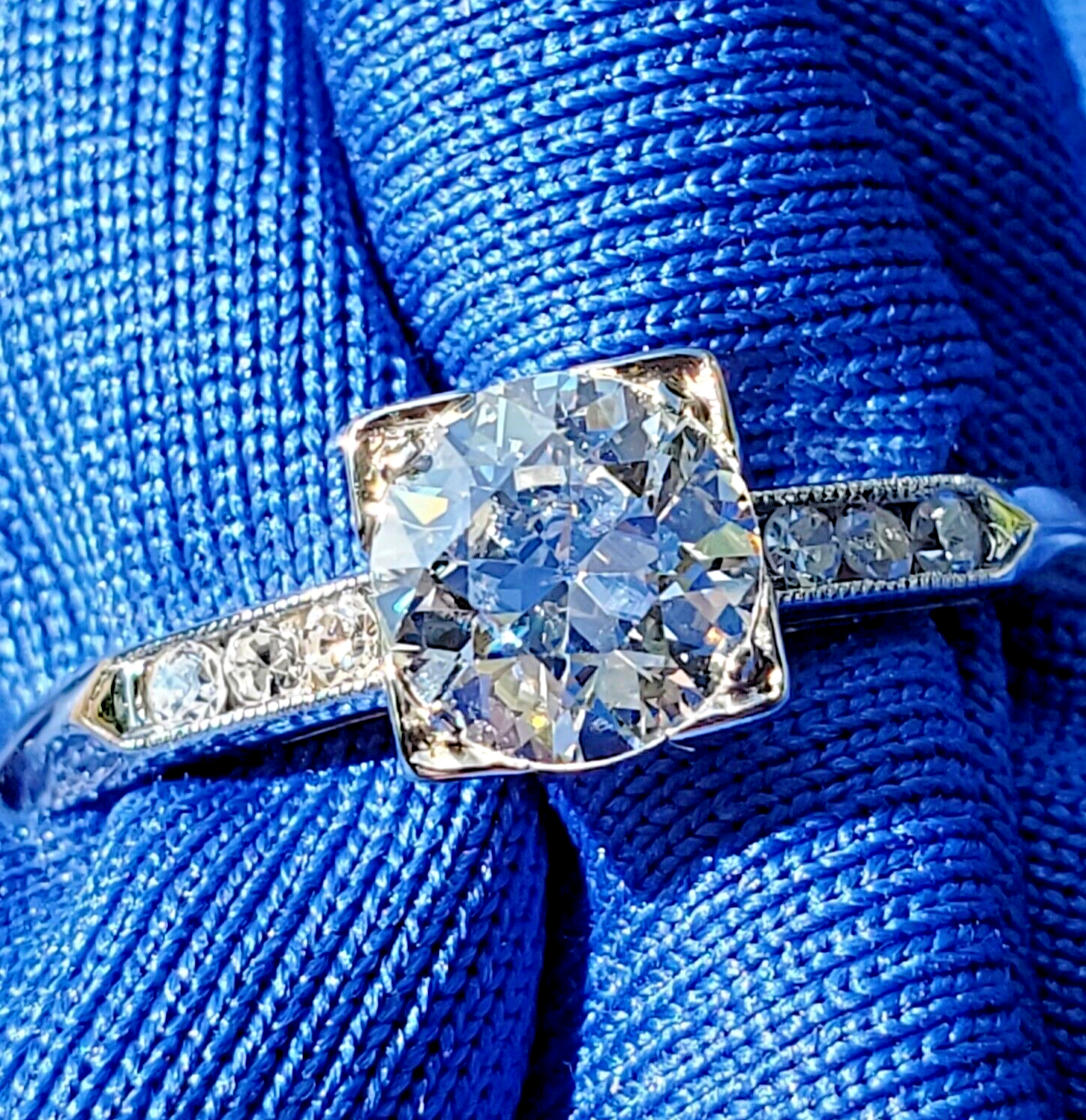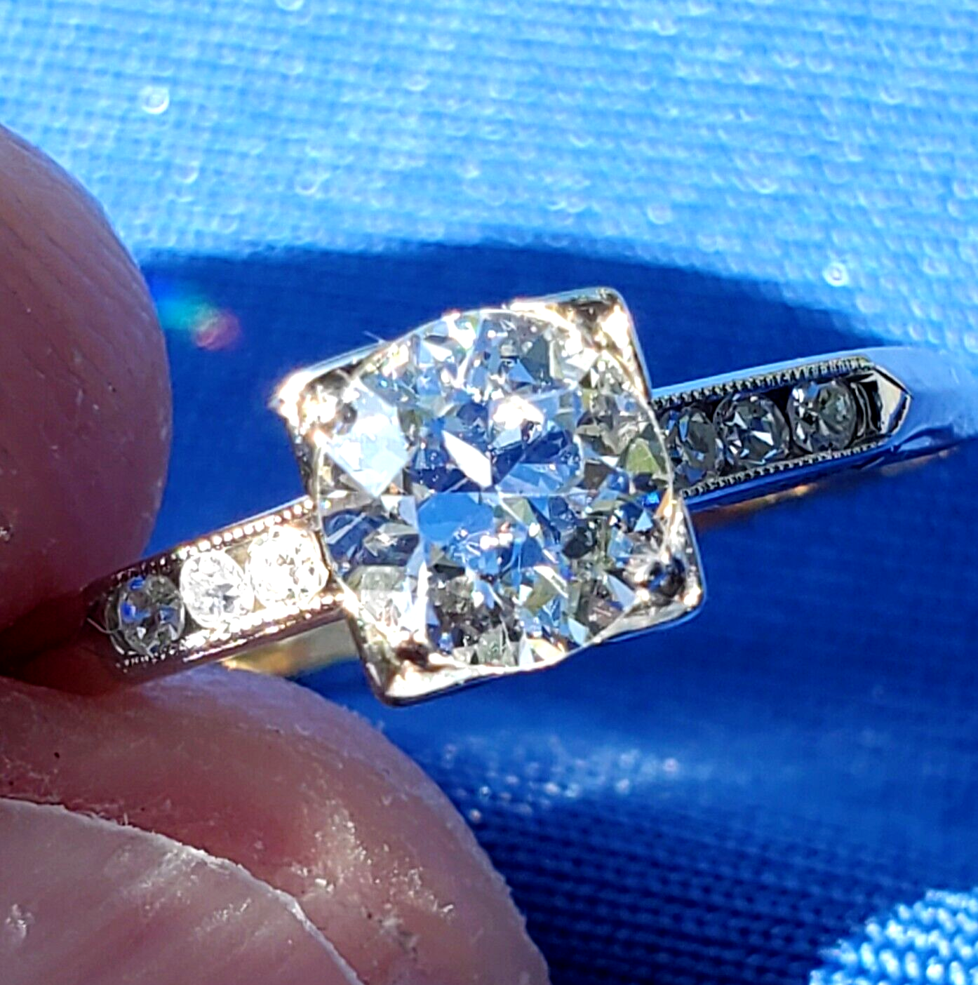 Earth mined Diamond European Deco Engagement Ring Vintage Statement Solitaire 7