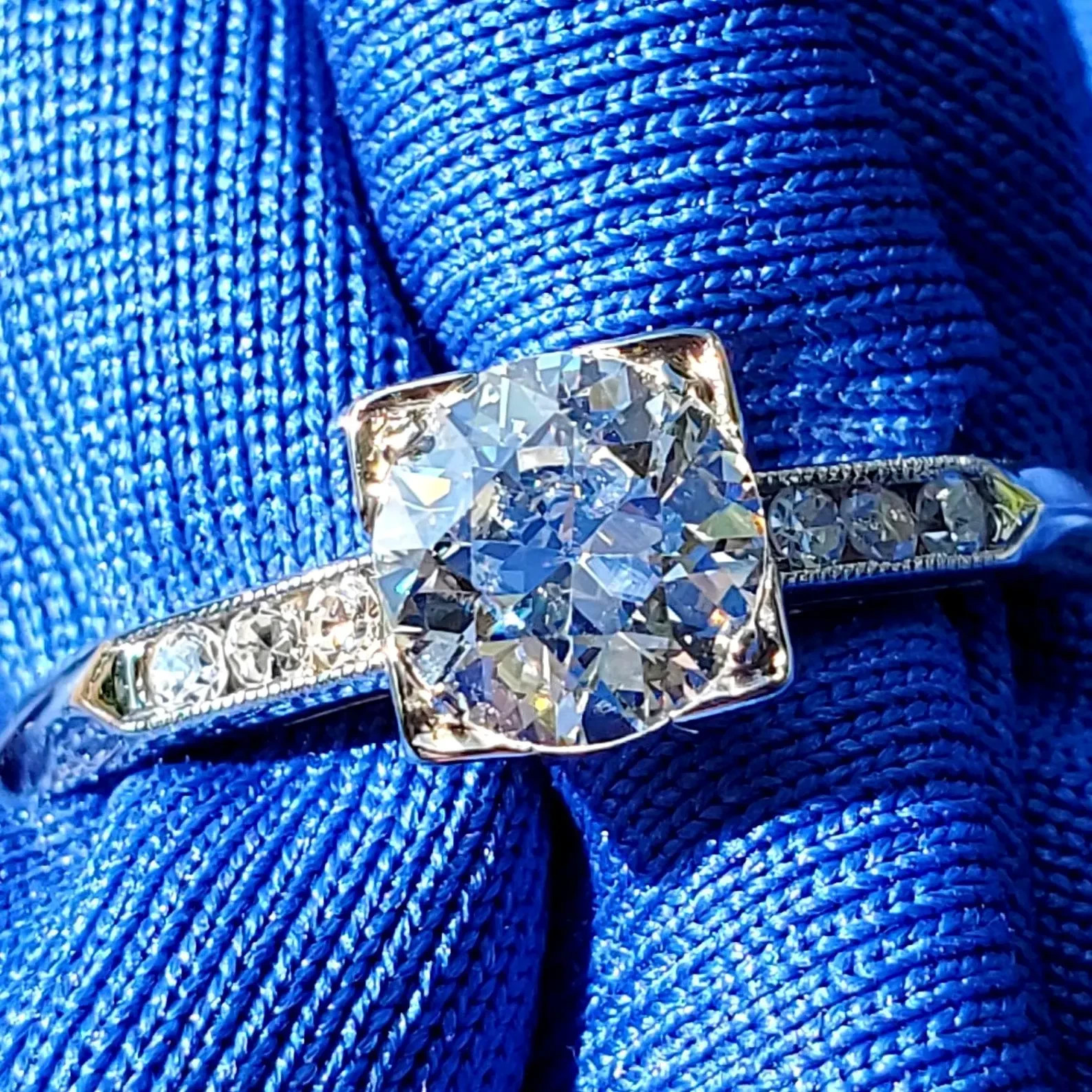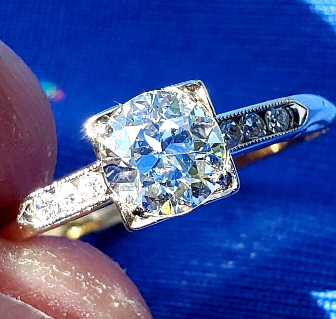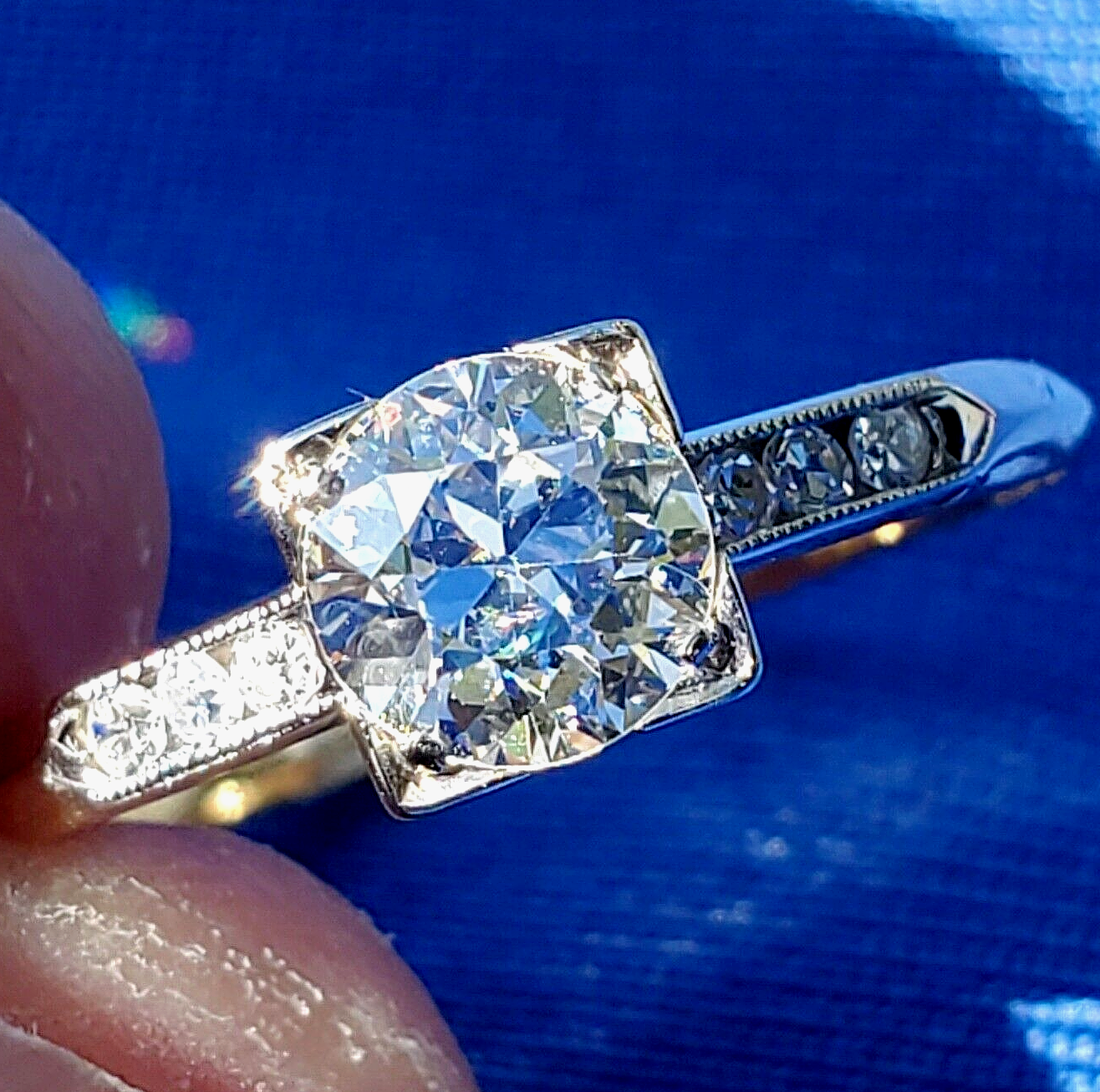 Earth mined Diamond European Deco Engagement Ring Vintage Statement Solitaire 7