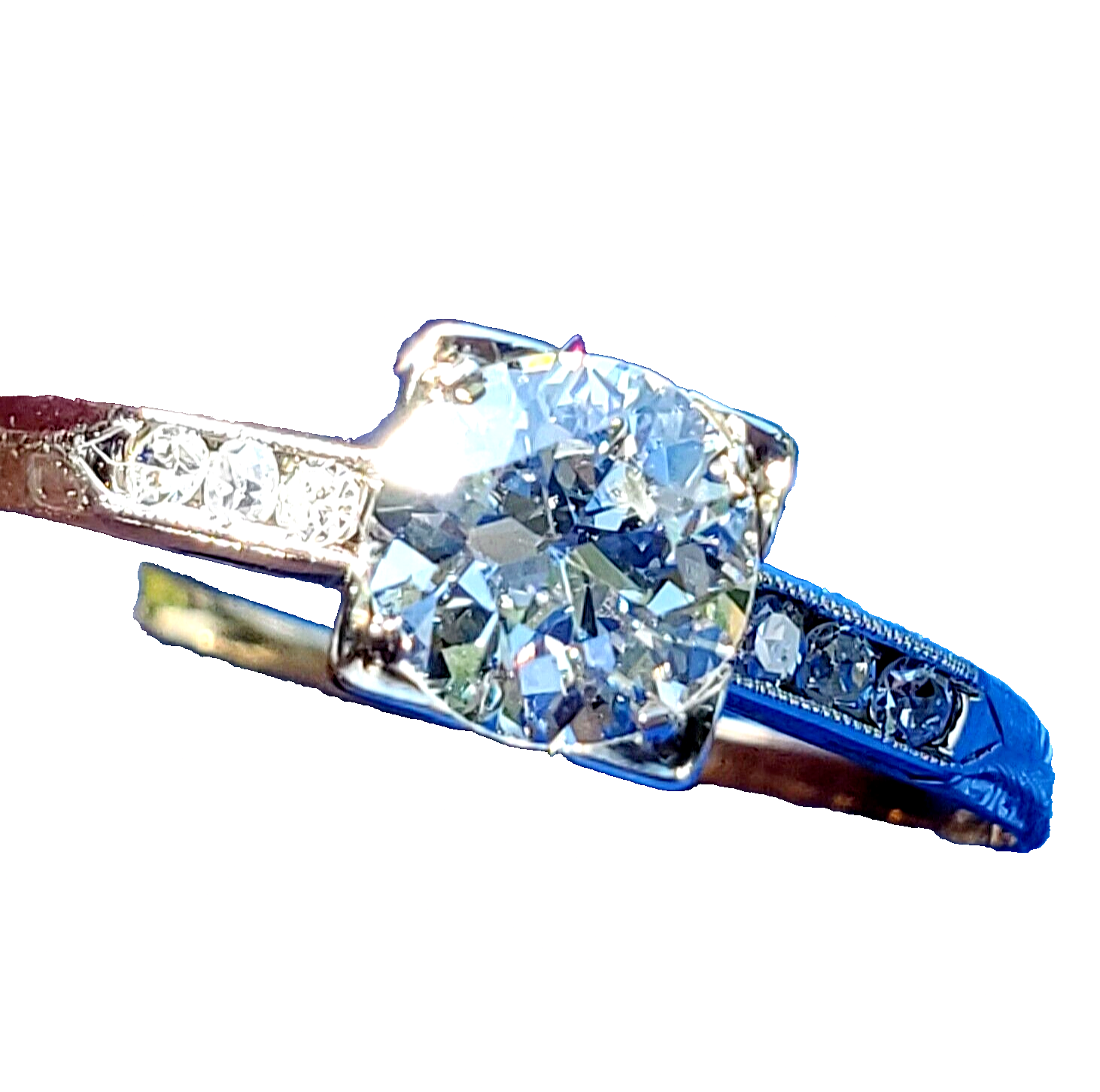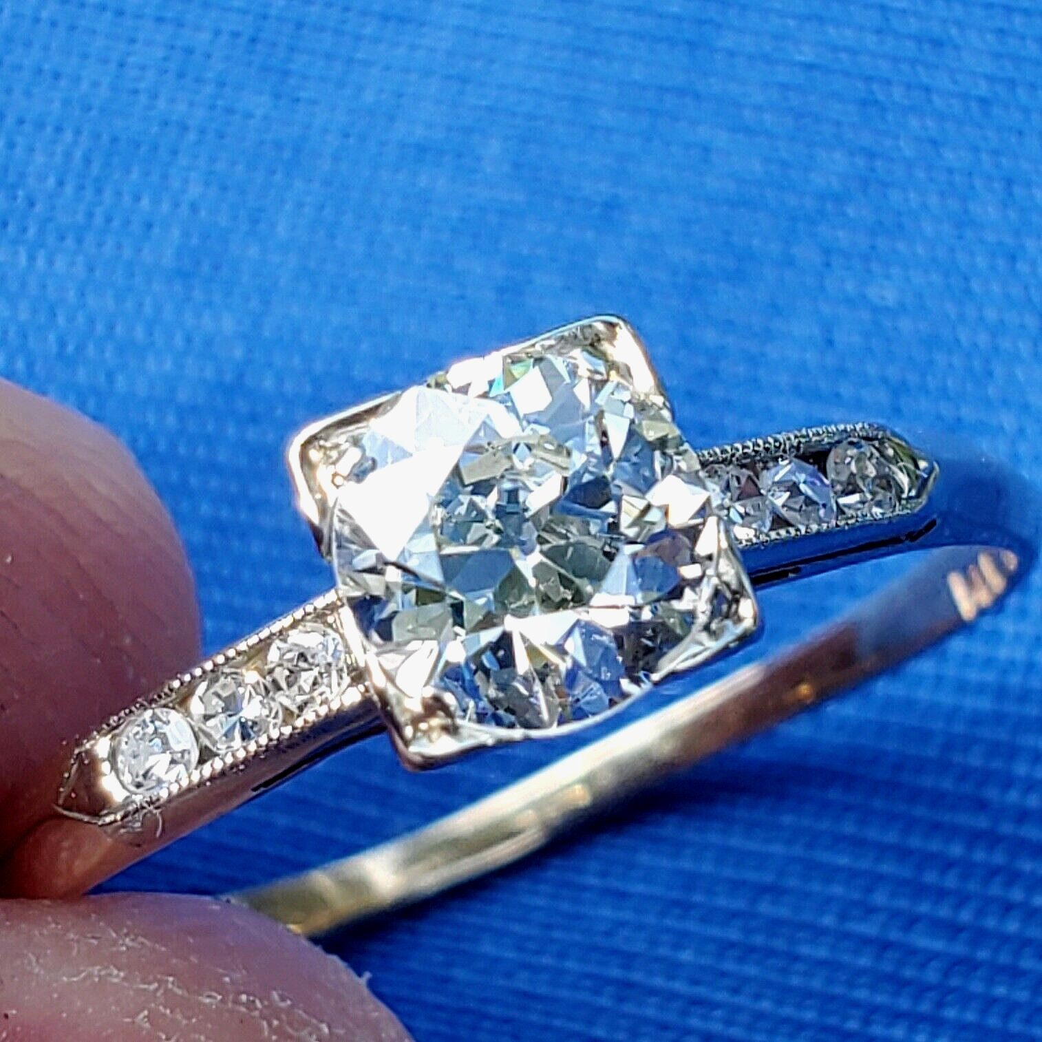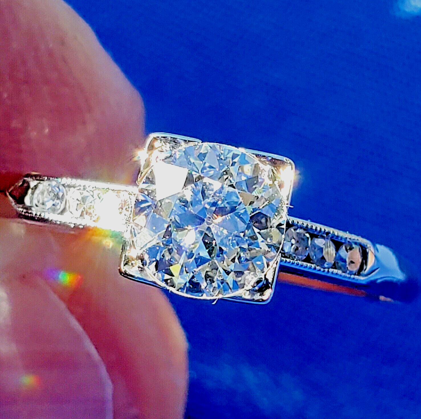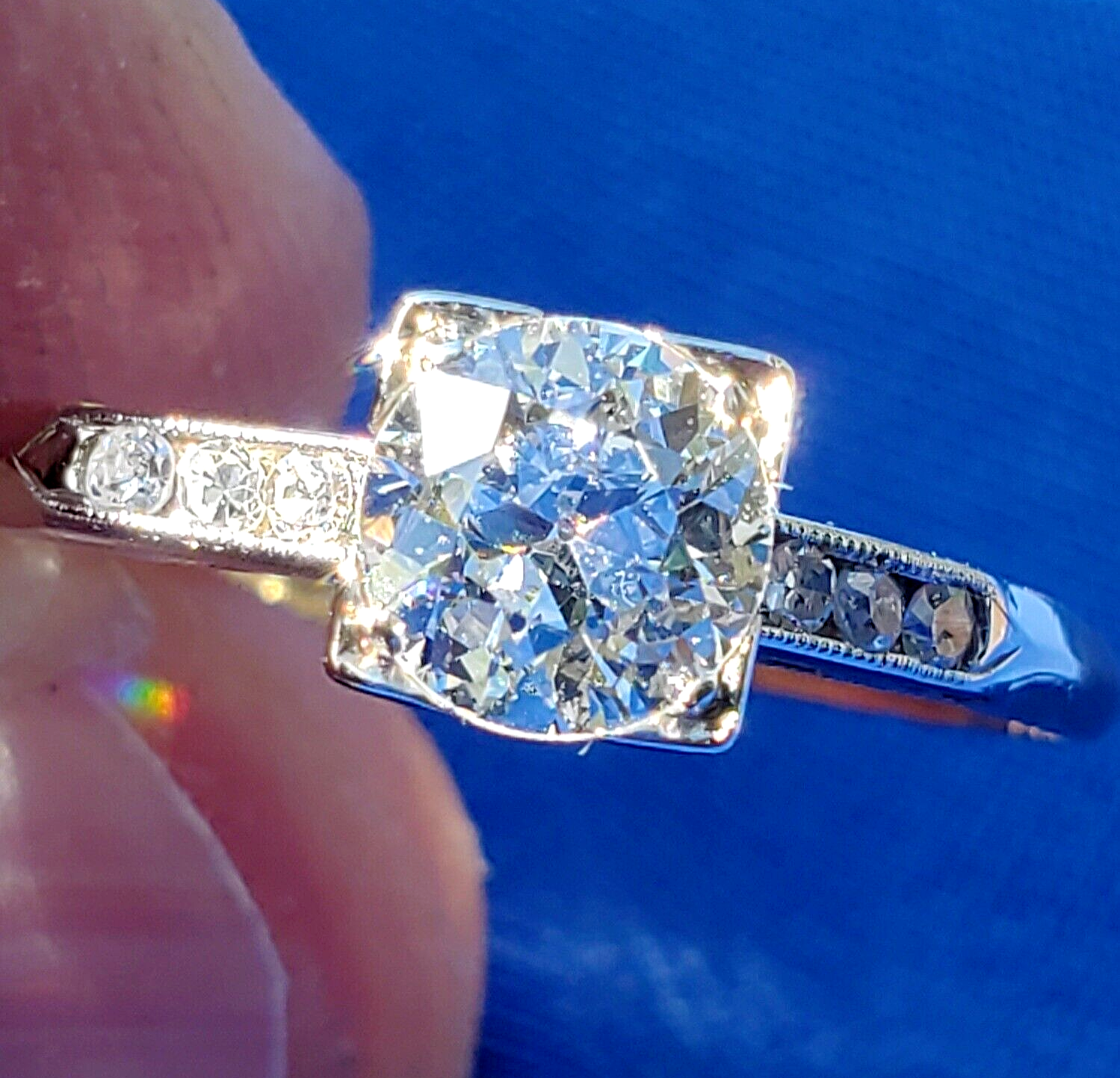 Earth mined Diamond European Deco Engagement Ring Vintage Statement Solitaire 7
